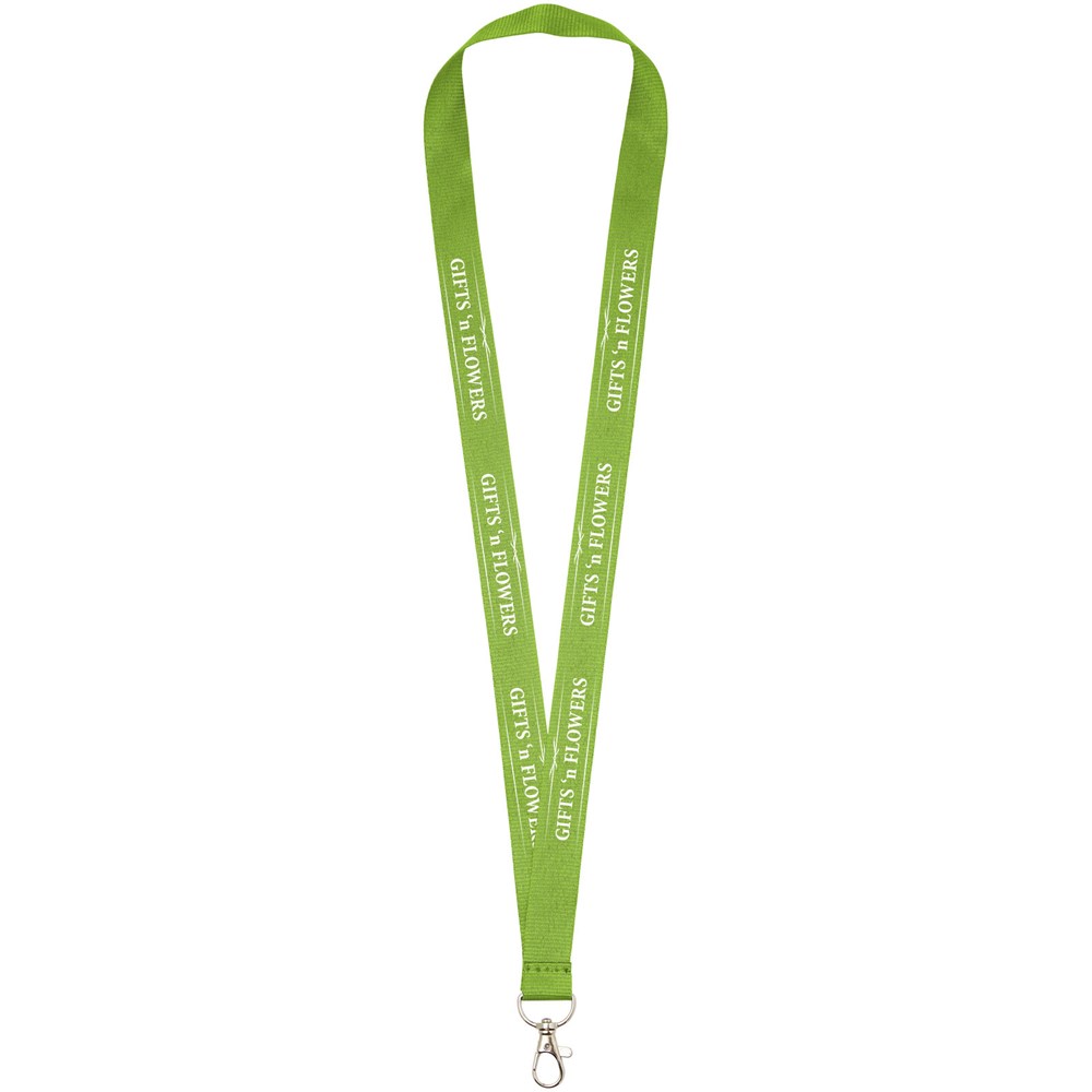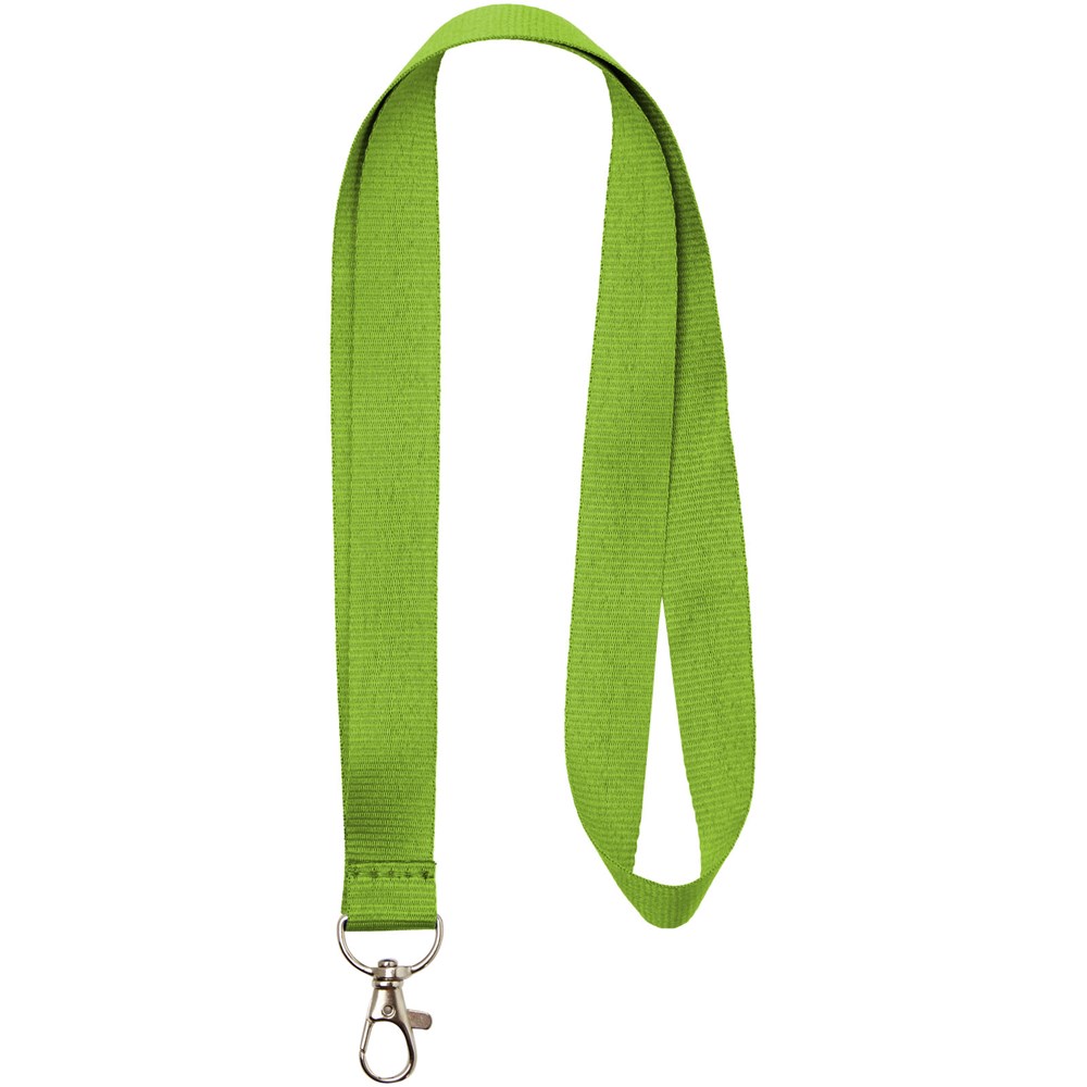 Instapmodel lanyard in een groot aantal kleuren. Heel veel waar voor uw geld en indrukwekkende logoruimte. Hoogwaardige ovalen haak met musketonsluiting, ideaal voor badge, ID-kaart of sleutels. Geen instelkosten voor tweede locatie bij identiek bedrukkingspatroon aan beide zijden.