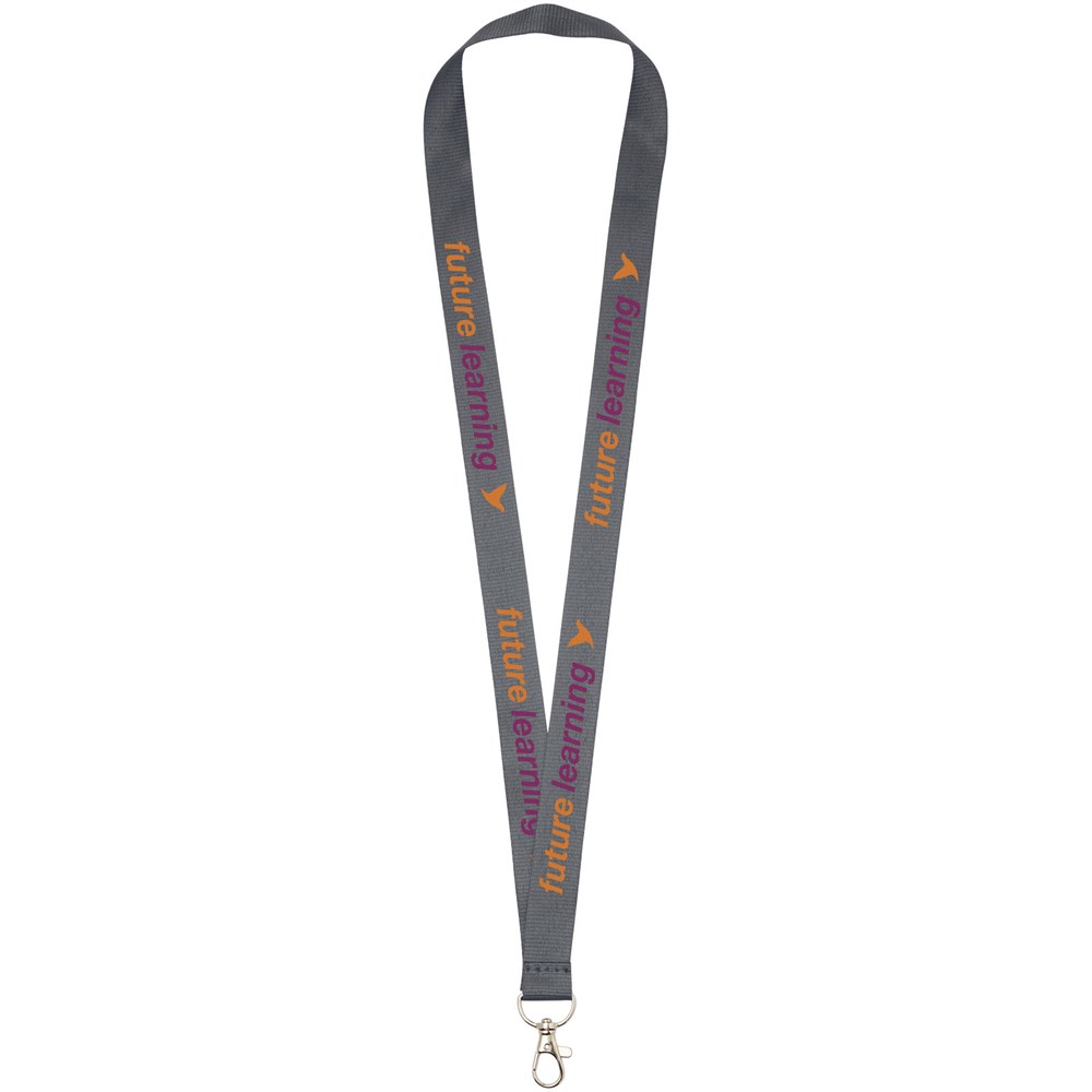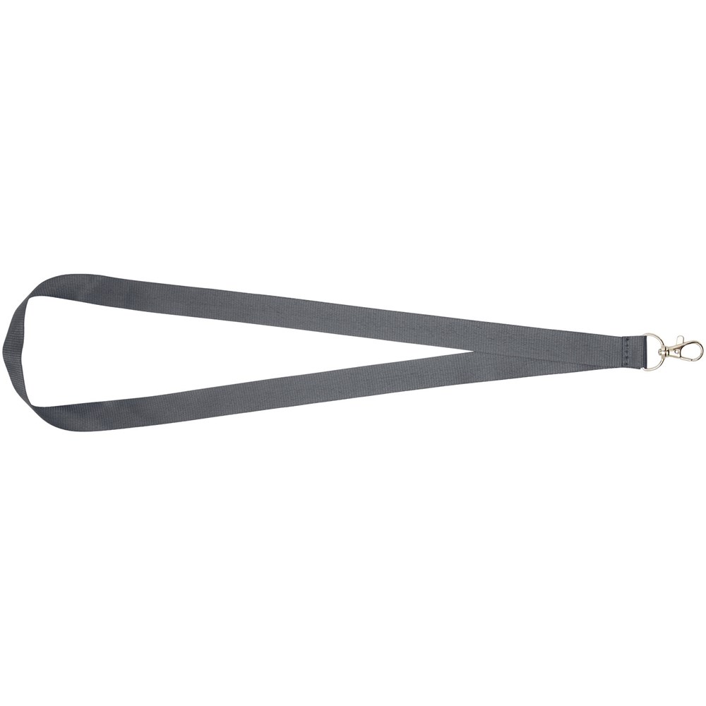 Instapmodel lanyard in een groot aantal kleuren. Heel veel waar voor uw geld en indrukwekkende logoruimte. Hoogwaardige ovalen haak met musketonsluiting, ideaal voor badge, ID-kaart of sleutels. Geen instelkosten voor tweede locatie bij identiek bedrukkingspatroon aan beide zijden.