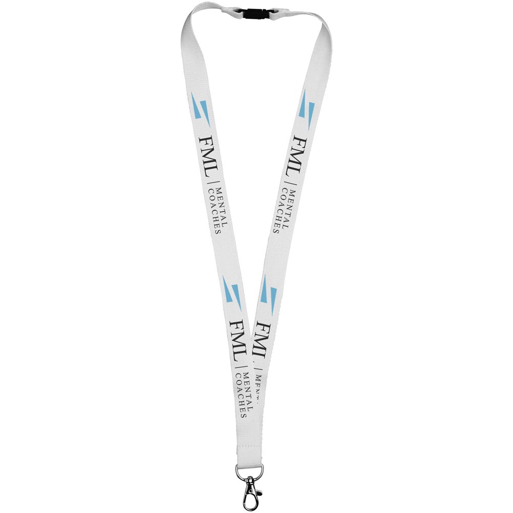 100% bamboe lanyard met veiligheidssluiting. Geweldige prijs/kwaliteitverhouding en indrukwekkende logoformaten bij het zoeken naar een groene keuze. Hoogwaardige ovalen haak met karabijnsluiting, ideaal voor het vastmaken van een naambadge, ID-kaart of sleutels.