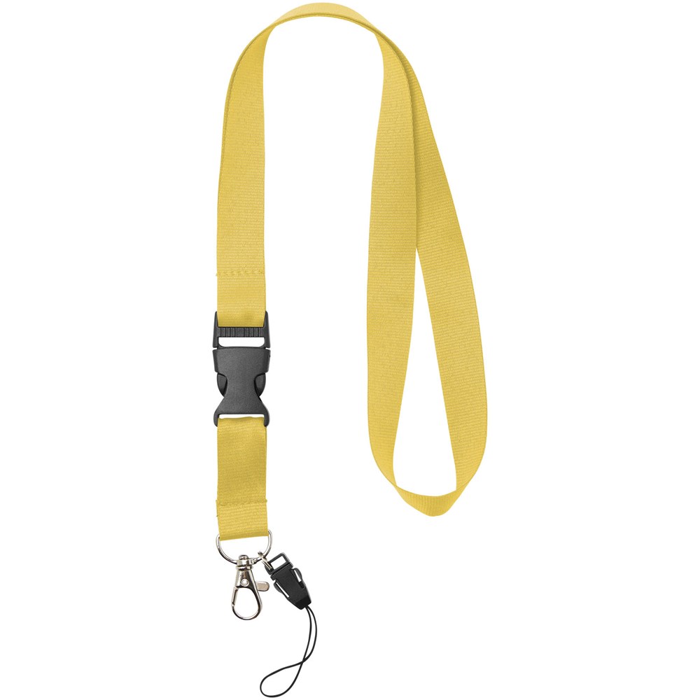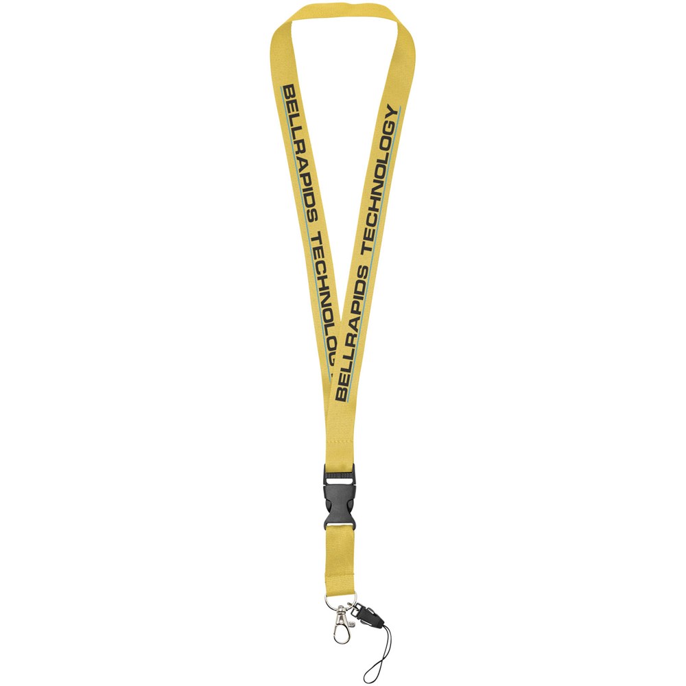 Deze multifunctionele lanyard is voorzien van een afneembare gesp, ovalen haak met musketonsluiting en telefoonhouder. Ideaal voor badge, ID-kaart of sleutels. Verkrijgbaar in een groot aantal kleuren en altijd indrukwekkend veel ruimte voor uw logo. Een compleet assortiment voor alle toepassingen. Geen instelkosten voor tweede locatie bij identiek bedrukkingspatroon aan beide zijden.