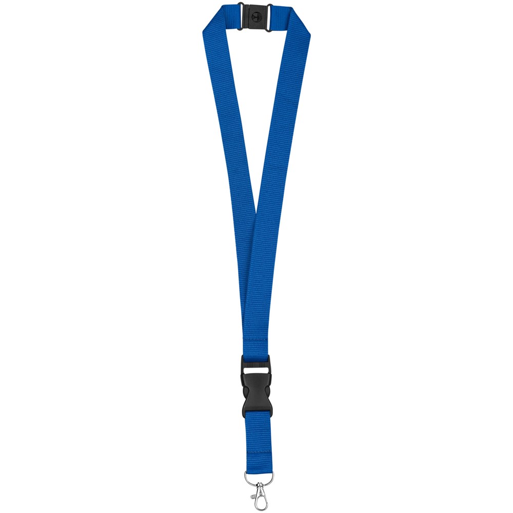 Lanyard voor badge, ID-kaart of sleutels. Met veiligheidssluiting tegen verstikkingsgevaar. Instelkosten voor tweede locatie vervallen als beide zijden op dezelfde manier worden gedecoreerd. Decoratiekosten wel van toepassing.