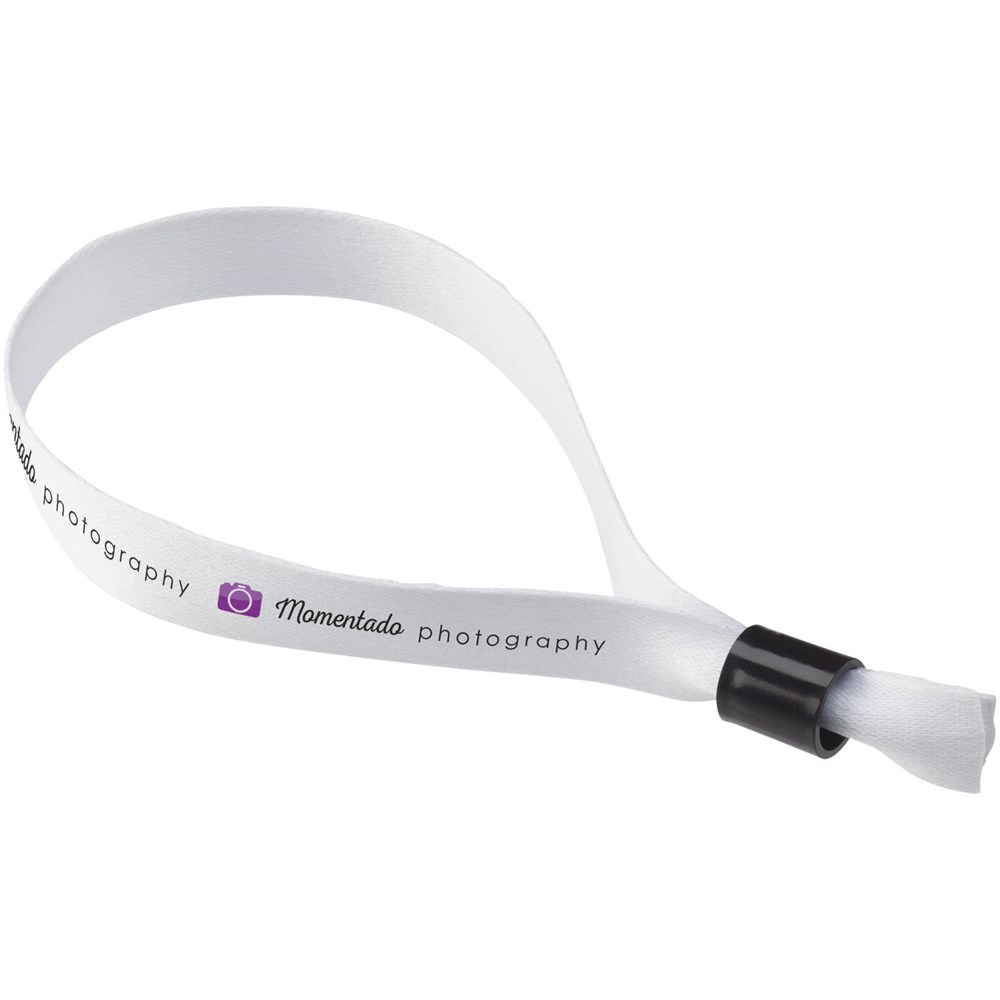 Polyester armbandje met veiligheidssluiting. Deze éénrichting veiligheidssluiting voorkomt dat het bandje opengemaakt kan worden zonder te beschadigen. Dit maakt het een perfect item voor toegangscontrole op evenementen. Voorraad item : Veiligheidssluiting wordt los geleverd van het armbandje. Vanaf 300 stuks zijn deze bandjes custom-made leverbaar met full colour sublimatie aan beide zijden.