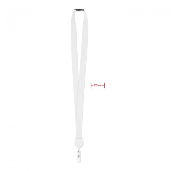 Polyester lanyard met uitrekbare badgehouder en safety break in de nek. Sublimatie bedrukking alleen geschikt op het witte item.