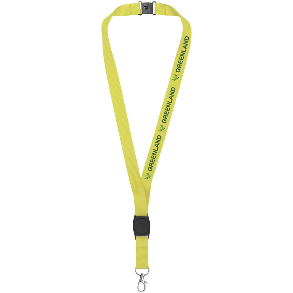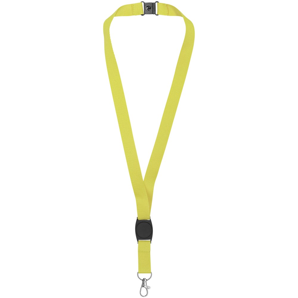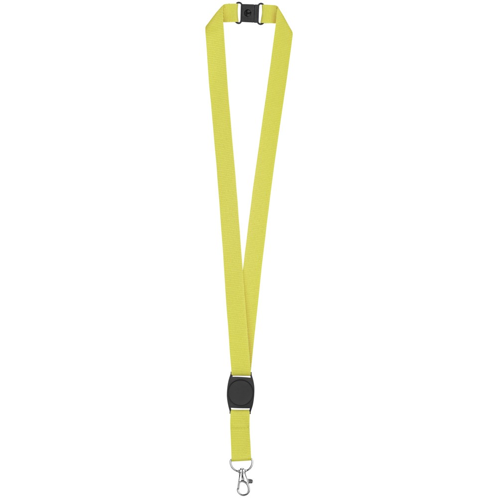 Lanyard voor het bevestigen van een badgehouder, ID-kaart of sleutels. Inclusief kunststof middenstuk voor logo-decoratie. De neksluiting elimineert verstikkingsgevaren.