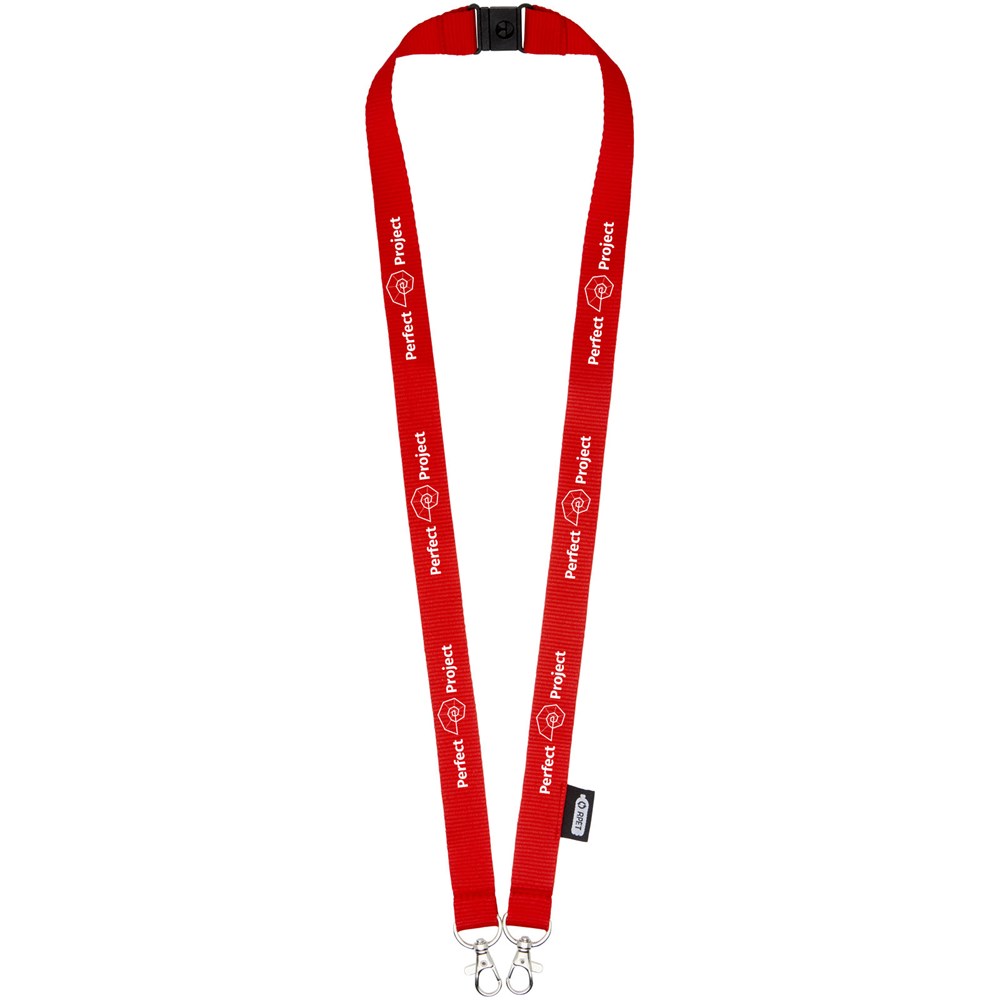 Adam gerecyclede PET lanyard met twee haken