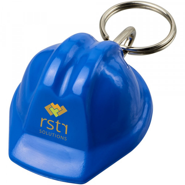 Sleutelhanger in de vorm van een helm met metalen sleutelring. Ideaal voor bouw- of veiligheidsorganisaties.