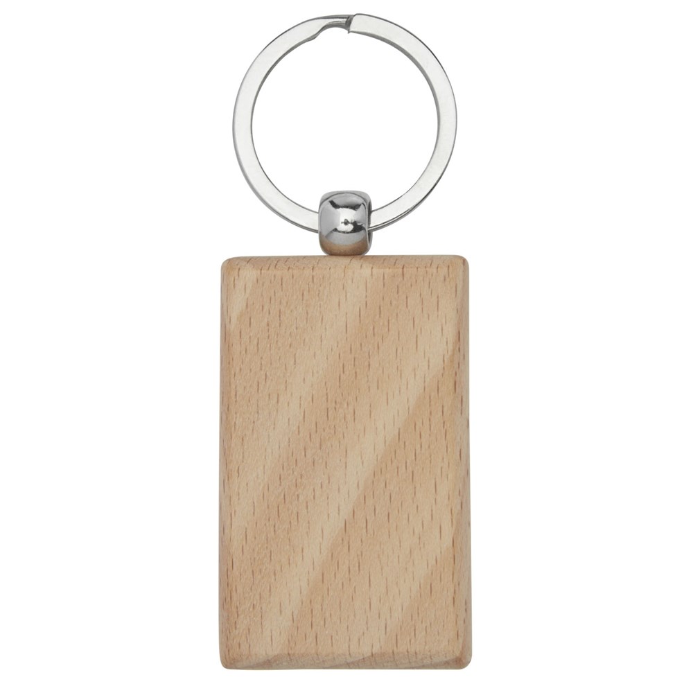 Rechthoekige sleutelhanger gemaakt van beukenhout, geleverd in een bruine ambachtelijke papieren envelop. De grootte van de sleutelhanger is 5,5 x 3,5 cm. Gemaakt voor lasergraveren.