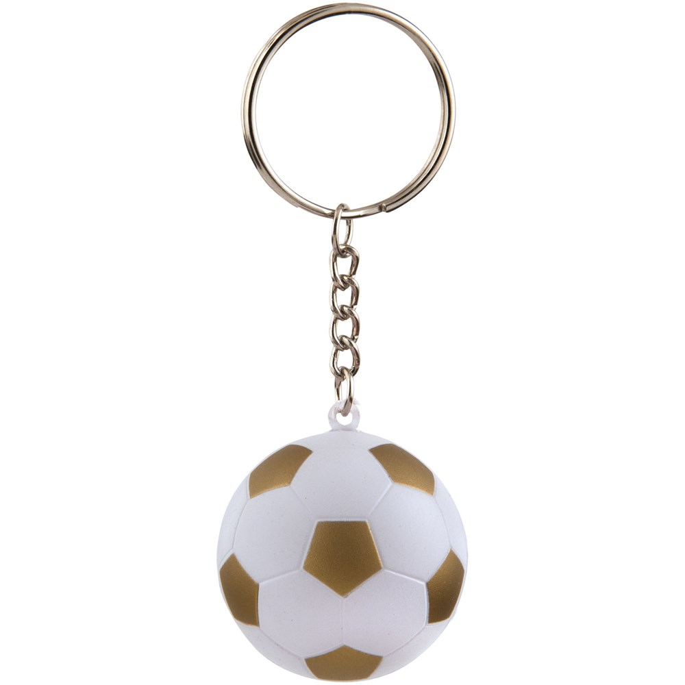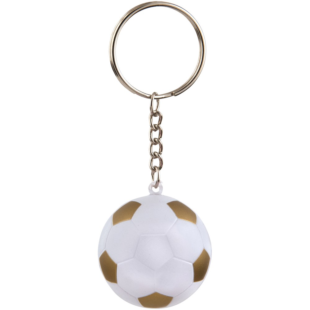 Sleutelhanger in de vorm van een voetbal. Knijp je stress op een sportieve manier weg. Bij anti-stress artikelen kunnen kleine variaties voorkomen in dichtheid, kleur, afmetingen en gewicht die effect kunnen hebben op precisie en uniformiteit van de bedrukking, die ook kan breken. Geen half-tinten. PU foam.