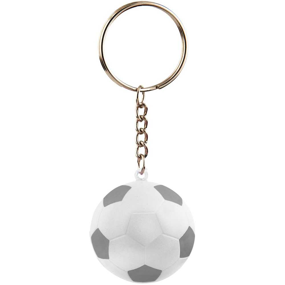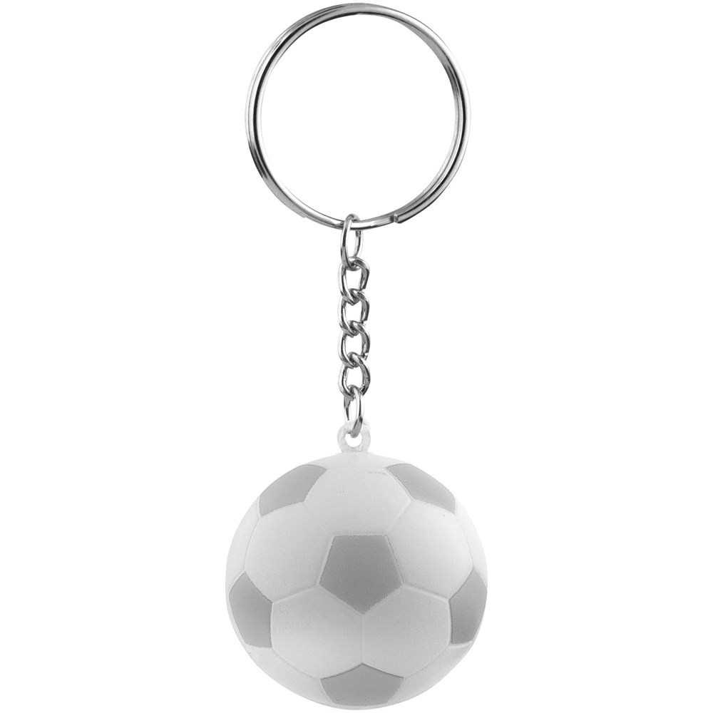 Sleutelhanger in de vorm van een voetbal. Knijp je stress op een sportieve manier weg. Bij anti-stress artikelen kunnen kleine variaties voorkomen in dichtheid, kleur, afmetingen en gewicht die effect kunnen hebben op precisie en uniformiteit van de bedrukking, die ook kan breken. Geen half-tinten. PU foam.