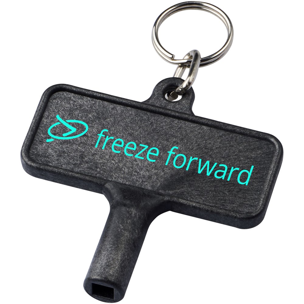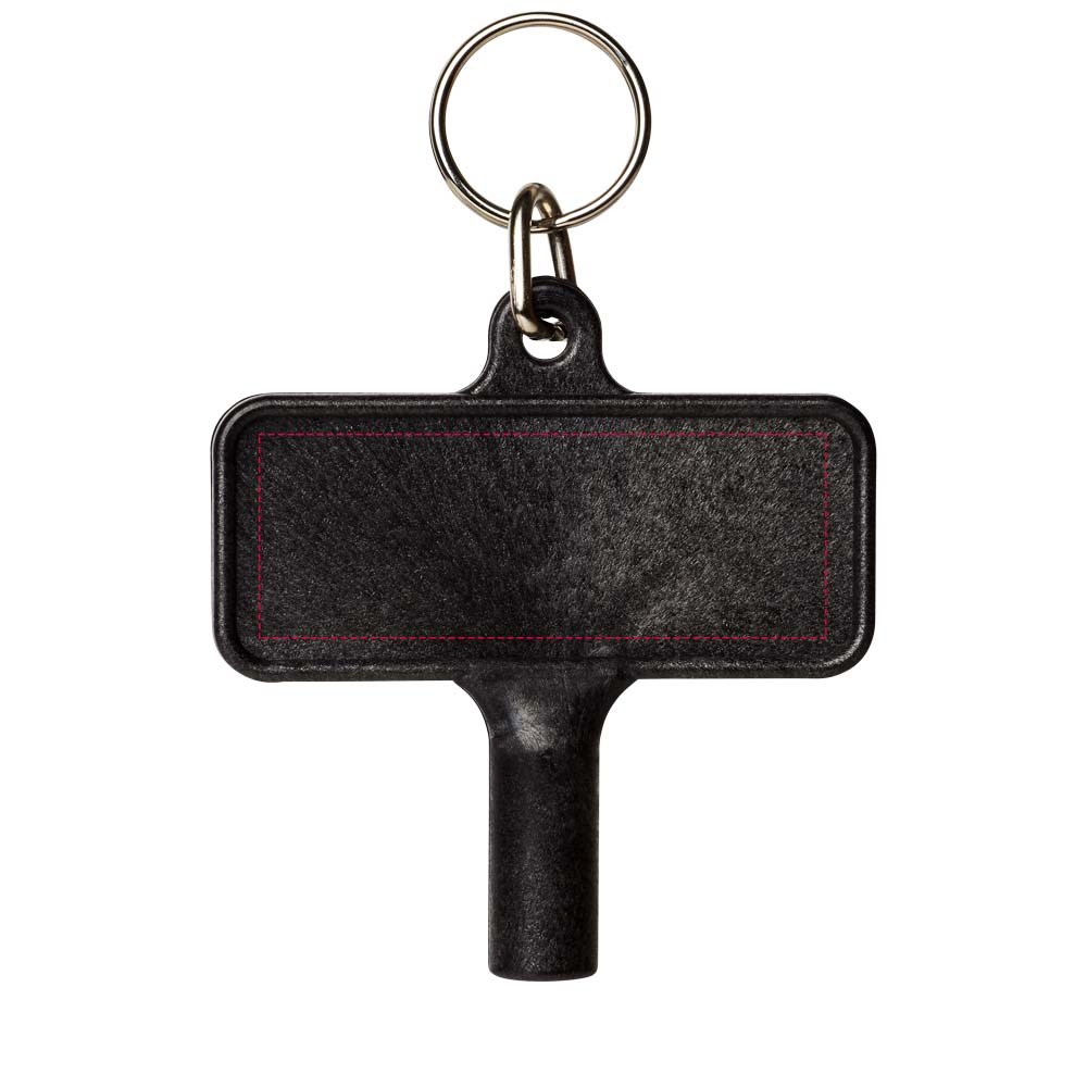 Hulpsleutel met sleutelhanger voor items zoals radiatoren, meterboxen, straatpalen. De afmetingen van de opening is een vierkante vorm met 5 mm randen.