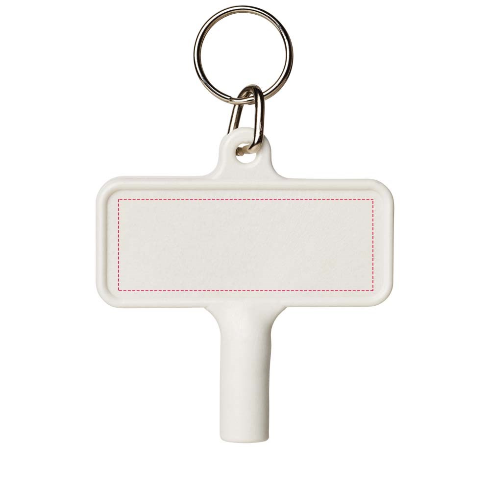 Hulpsleutel met sleutelhanger voor items zoals radiatoren, meterboxen, straatpalen. De afmetingen van de opening is een vierkante vorm met 5 mm randen.