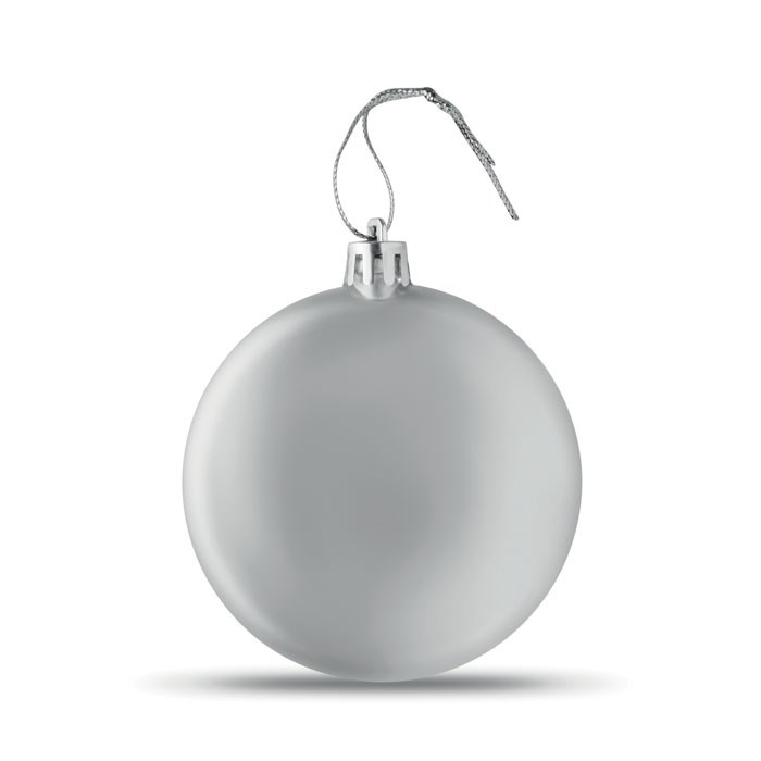 Ronde afgeplatte kerstbal in PP met metalen spuitlaag met linthanger. mehr