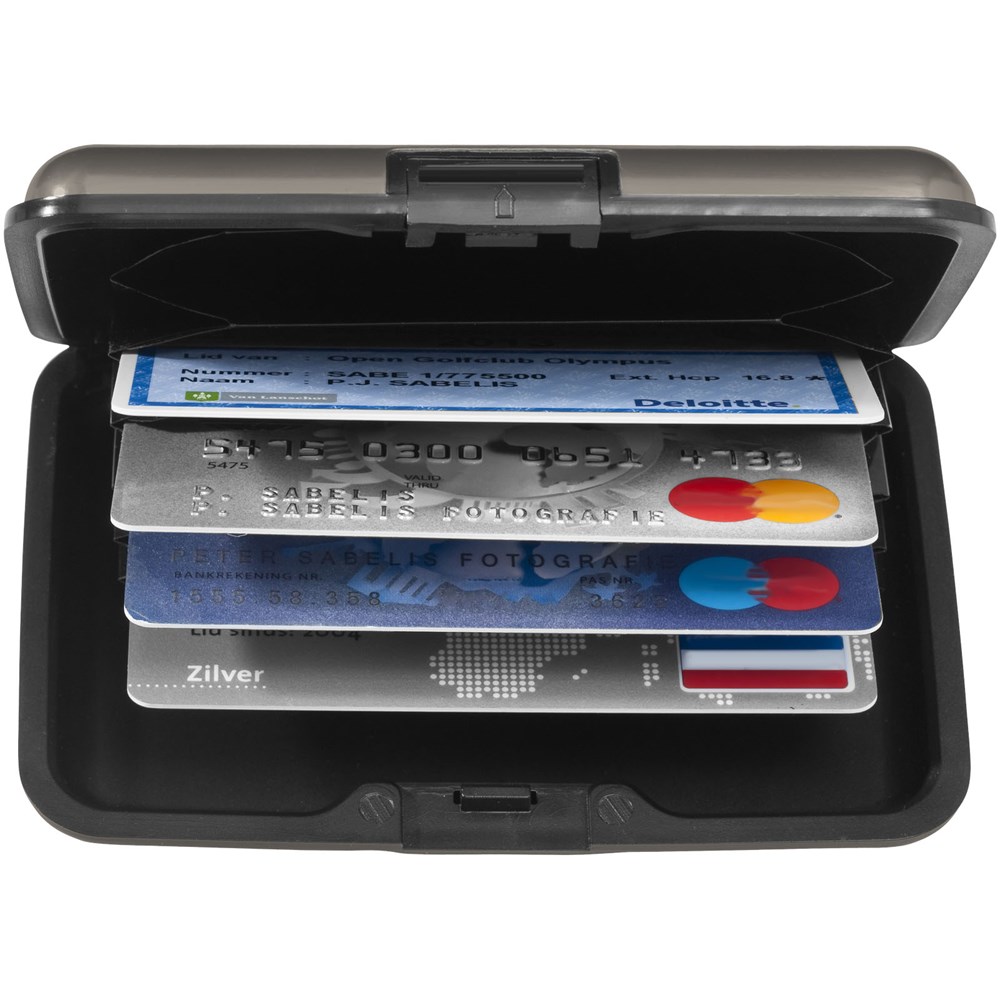 Deze creditcardhouder heeft zes vakken voor twaalf creditcards. mehr