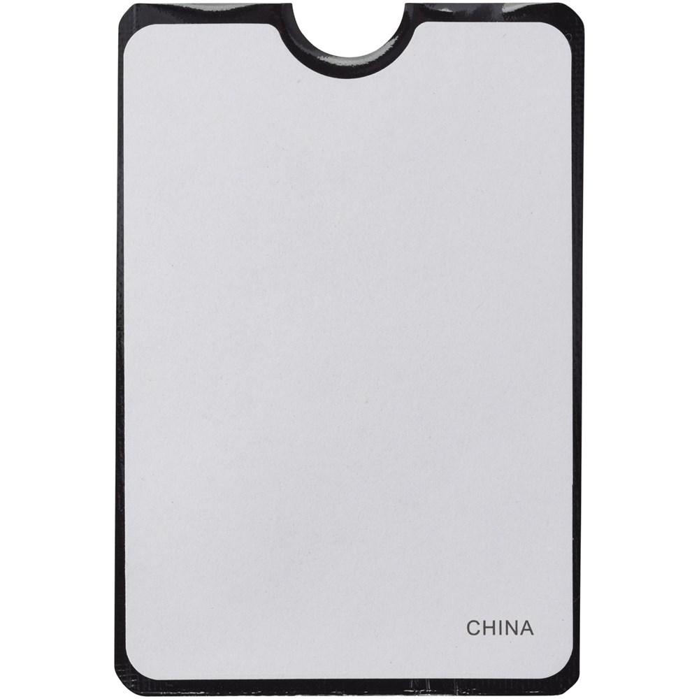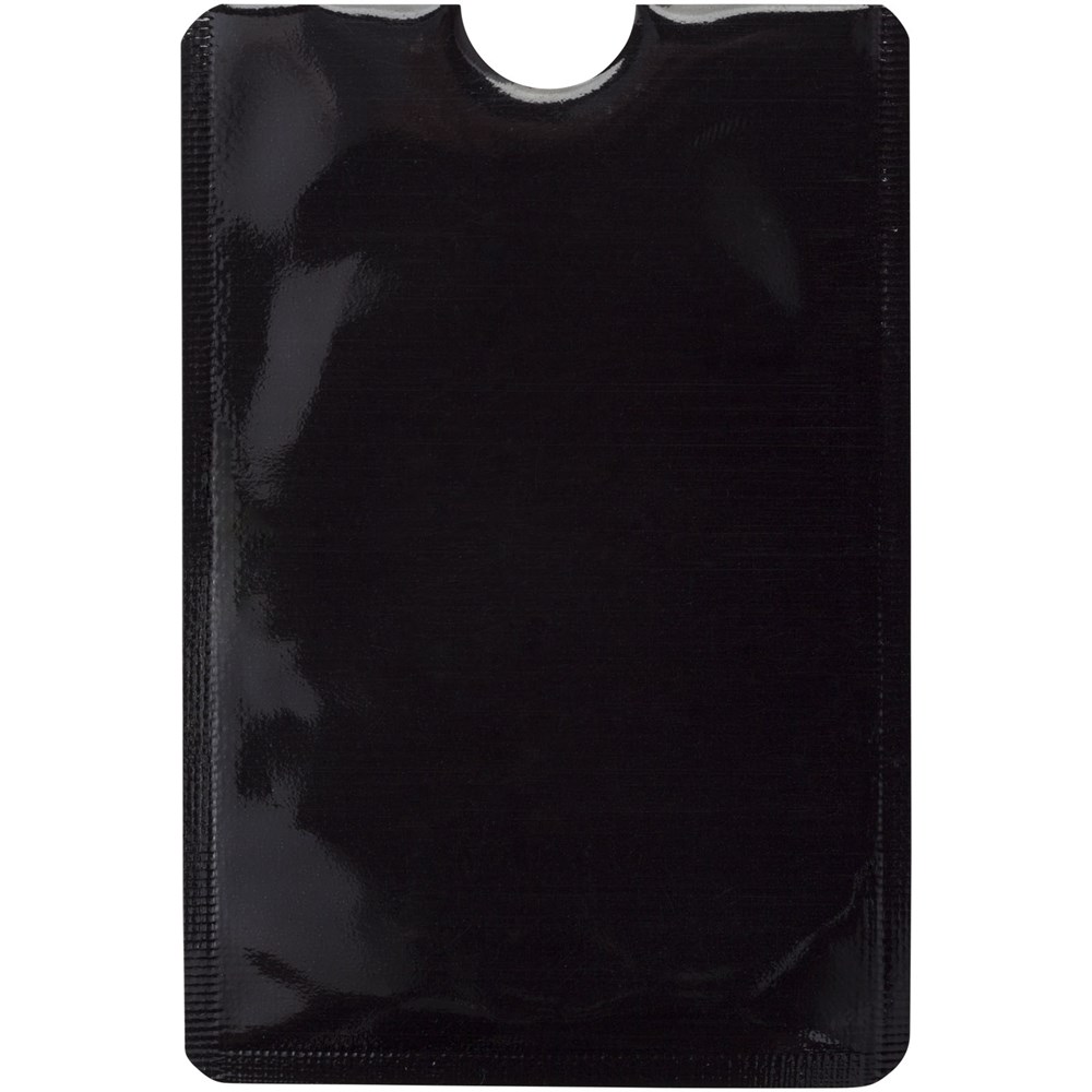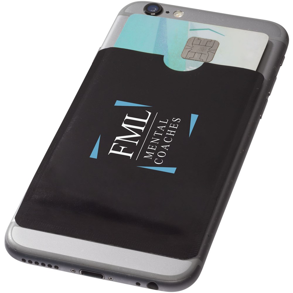 In nieuwe creditcards zit vaak een RFID chip (Radio Frequency Identification) die scannen en het delen van informatie makkelijker maakt. Tegelijkertijd betekent dat een risico op het gebied van veiligheid en privacy. De beschermlaag in dit mapje blokkeert RFID-signalen en zorgt ervoor dat persoonlijke gegevens niet door onbevoegde of kwaadwillende personen gescand of gelezen kunnen worden. Het mapje biedt plaats aan 2 creditcards of ID-kaarten en kan door middel van de zelfklevende strip worden bevestigd op een vlakke achterkant van een smartphone.