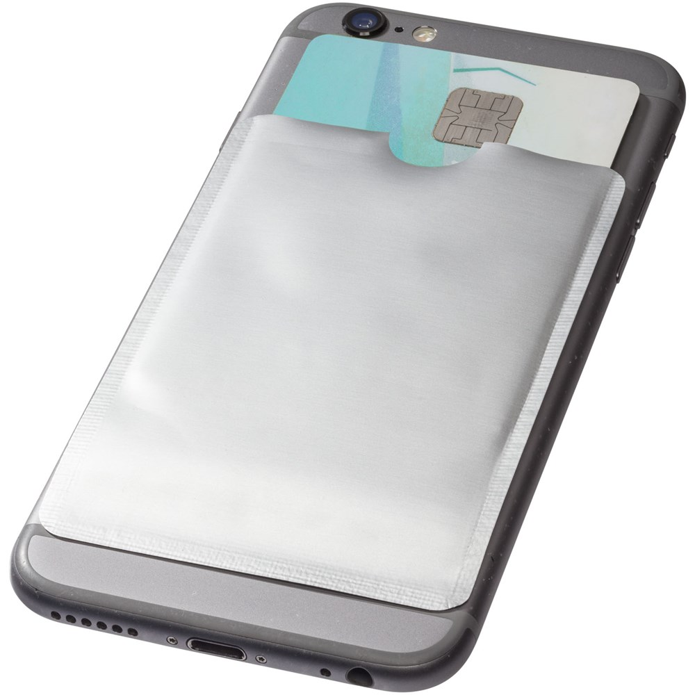 In nieuwe creditcards zit vaak een RFID chip (Radio Frequency Identification) die scannen en het delen van informatie makkelijker maakt. Tegelijkertijd betekent dat een risico op het gebied van veiligheid en privacy. De beschermlaag in dit mapje blokkeert RFID-signalen en zorgt ervoor dat persoonlijke gegevens niet door onbevoegde of kwaadwillende personen gescand of gelezen kunnen worden. Het mapje biedt plaats aan 2 creditcards of ID-kaarten en kan door middel van de zelfklevende strip worden bevestigd op een vlakke achterkant van een smartphone.