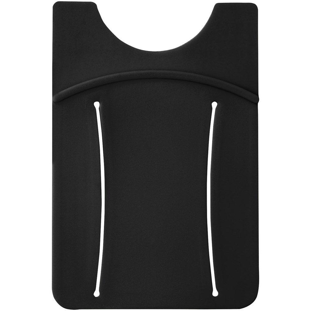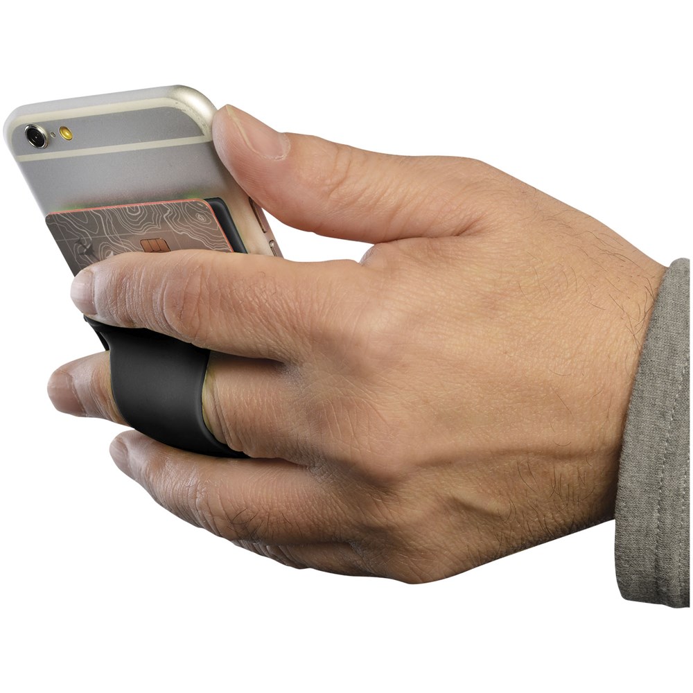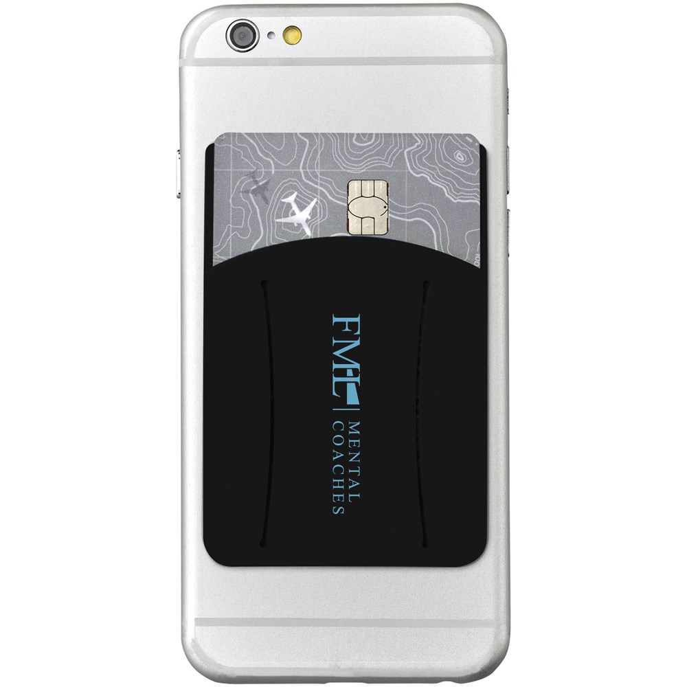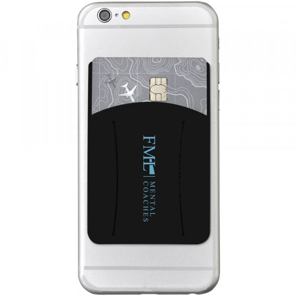 De ideale accessoire voor de smartphone. De siliconen kaarthouder wordt aangebracht aan de achterzijde van de telefoon door middel van een kleefstrook. Geschikt voor 1 creditcard, identiteitskaart, hotelkamerkaart of contant geld. Perfect voor als je geen tas mee wilt nemen of waardevolle spullen veilig bij elkaar wilt houden. Inclusief vingerslot om de telefoon makkelijk te kunnen bedienen. Drukleur mogelijk in zwart of wit.