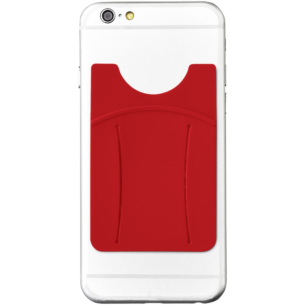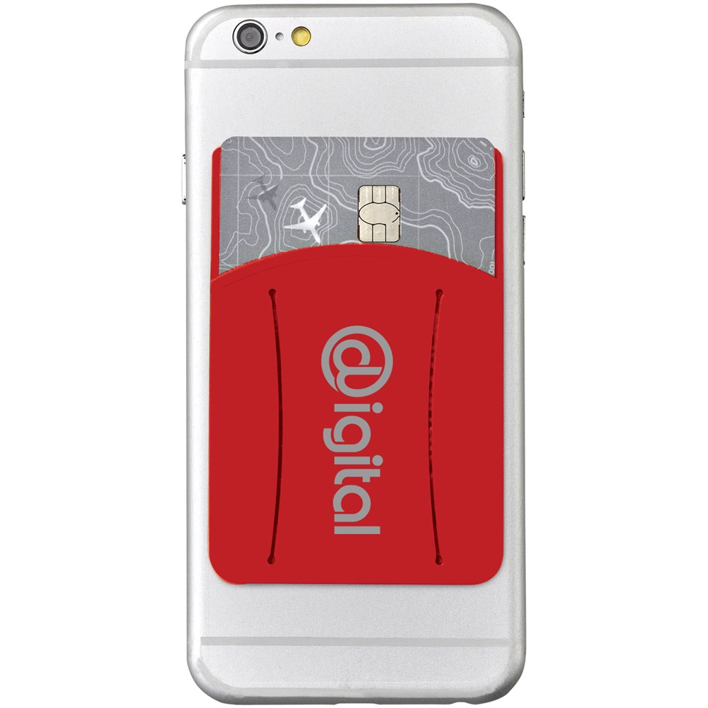 De ideale accessoire voor de smartphone. De siliconen kaarthouder wordt aangebracht aan de achterzijde van de telefoon door middel van een kleefstrook. Geschikt voor 1 creditcard, identiteitskaart, hotelkamerkaart of contant geld. Perfect voor als je geen tas mee wilt nemen of waardevolle spullen veilig bij elkaar wilt houden. Inclusief vingerslot om de telefoon makkelijk te kunnen bedienen. Drukleur mogelijk in zwart of wit.