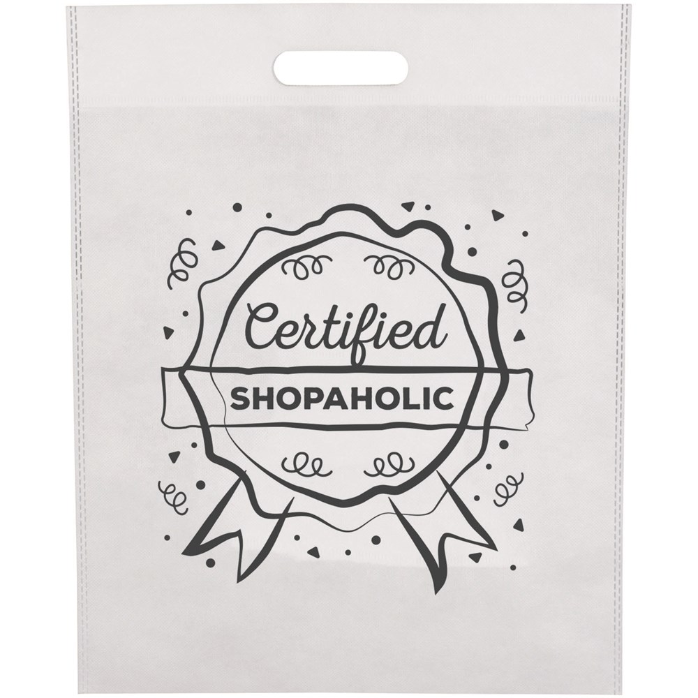 Open hoofdvak. Gestanst handvat. Warmtegesealede constructie met slank design. Herbruikbaar en een perfect alternatief voor plastic tassen of voor beurzen en congressen.