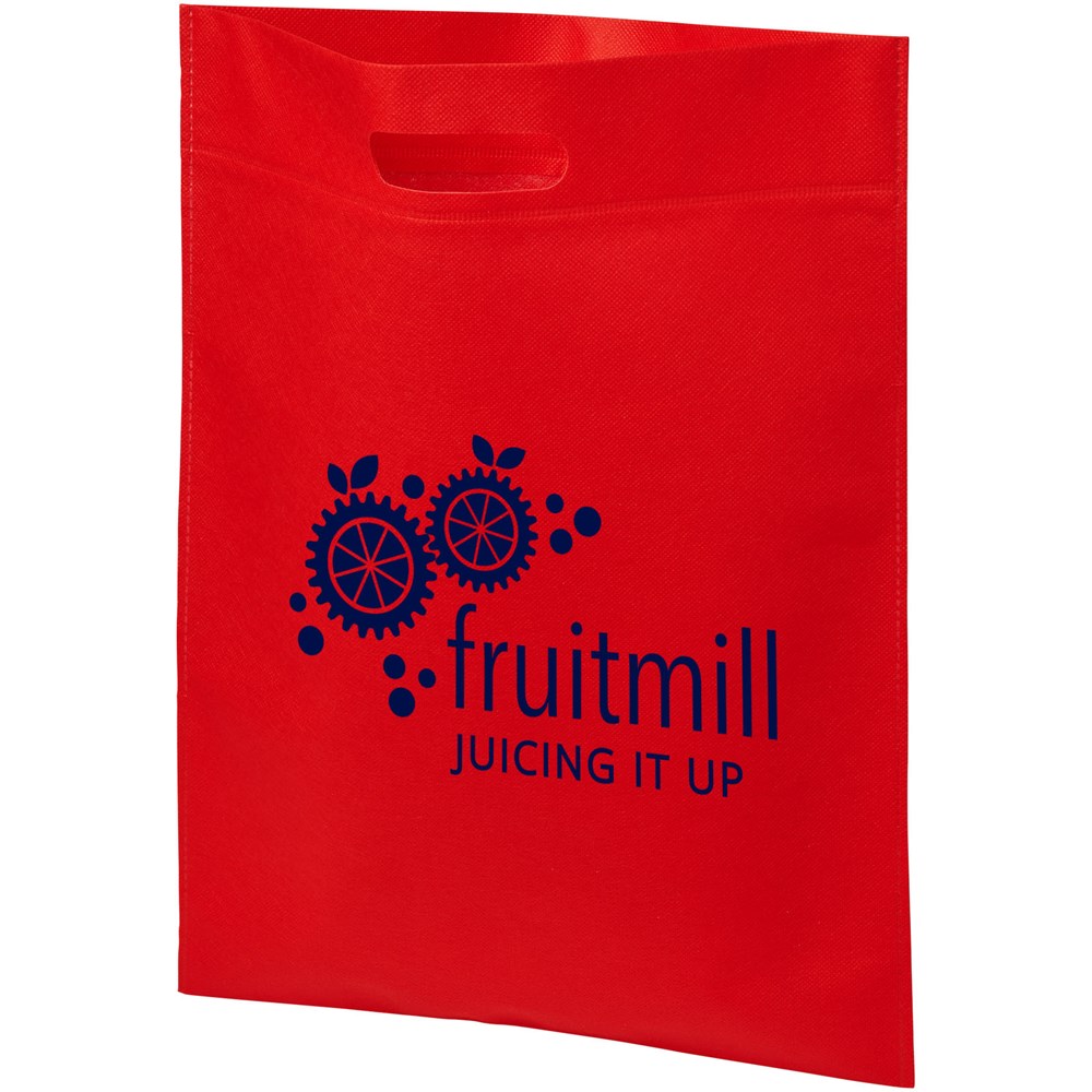Open hoofdvak. Gestanst handvat. Warmtegesealede constructie met slank design. Herbruikbaar en een perfect alternatief voor plastic tassen of voor beurzen en congressen.
