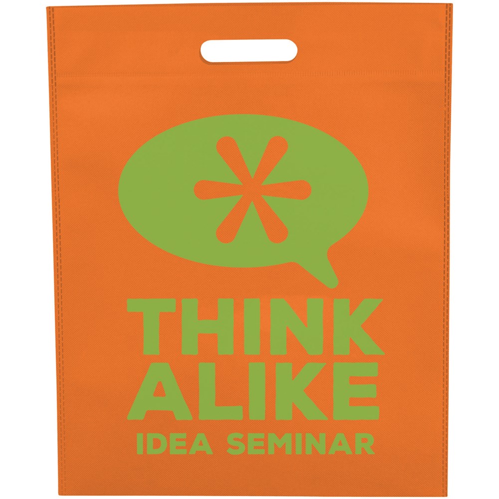 Open hoofdvak. Gestanst handvat. Warmtegesealede constructie met slank design. Herbruikbaar en een perfect alternatief voor plastic tassen of voor beurzen en congressen.