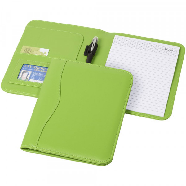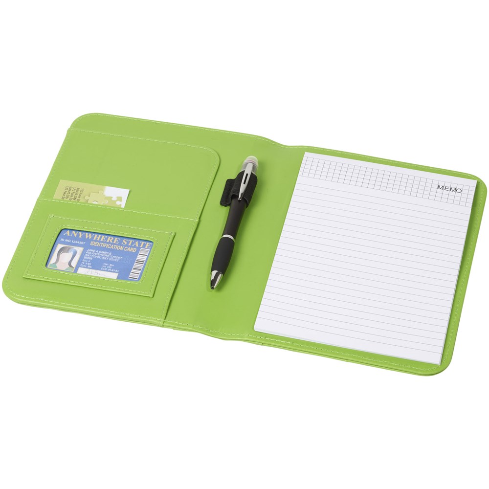 Portfolio A5 formaat met pennenlus, documentvakken en notitieblok met 20 pagina's gelinieerd papier. Pen en accessoires niet inbegrepen.