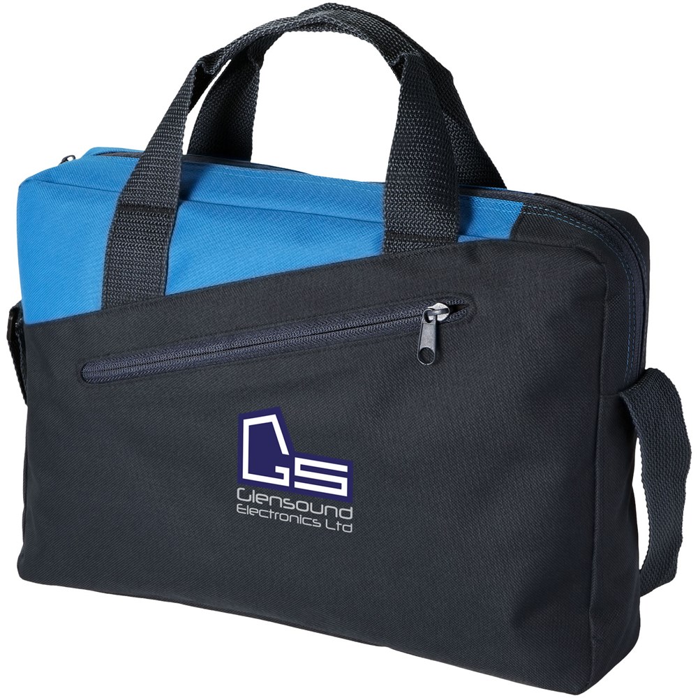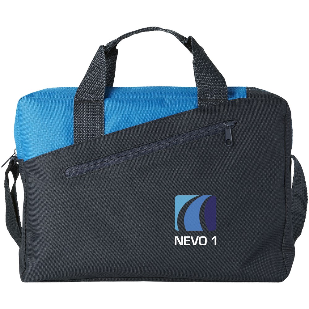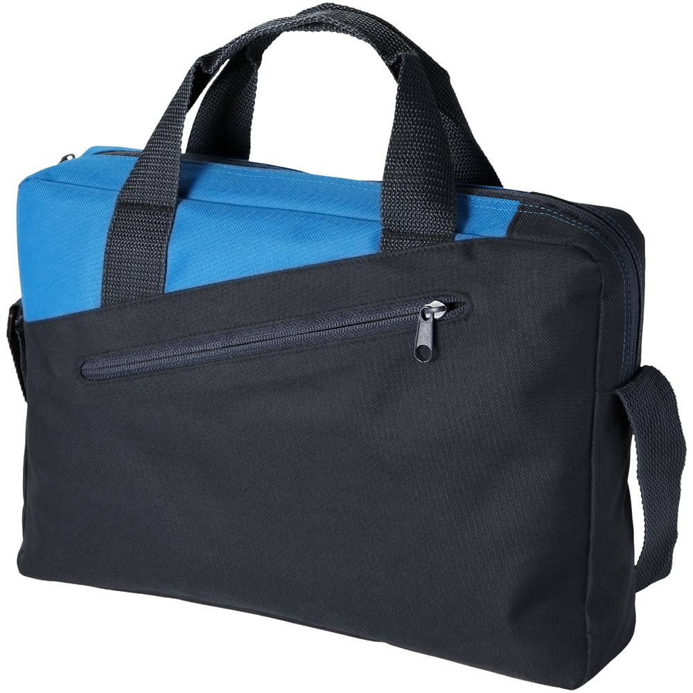 Conferentietas met dubbele handgreep en hoofdvak met ritssluiting en voorvak eveneens met ritssluiting.