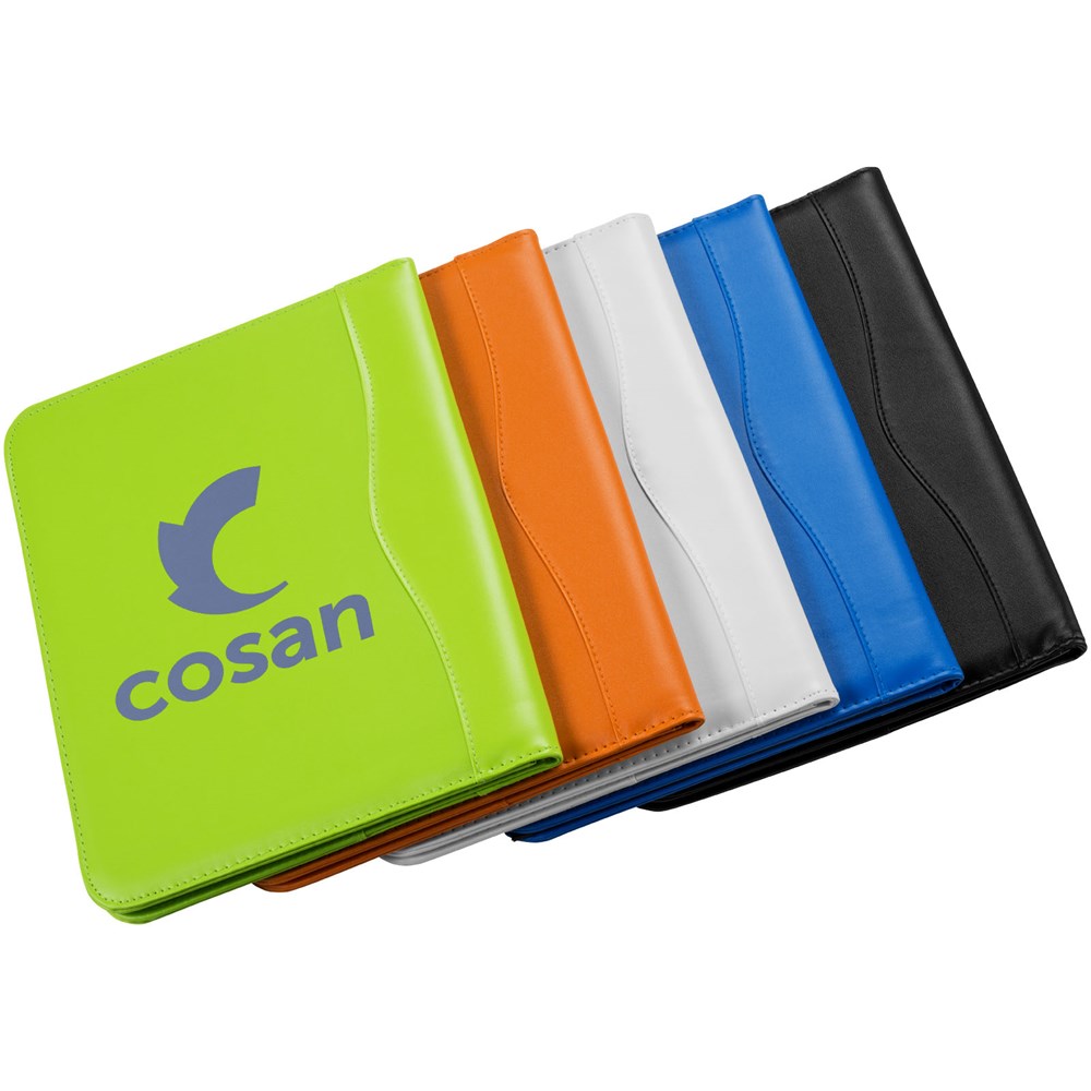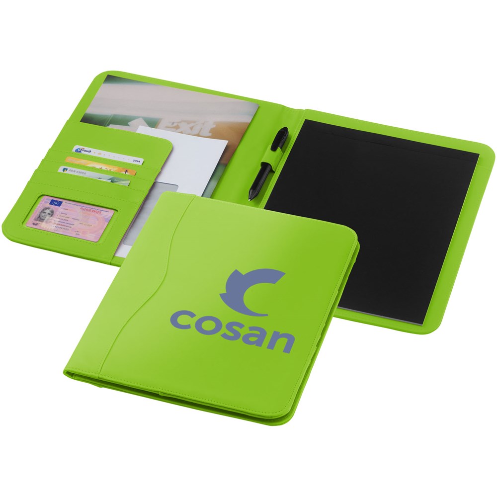 Portfolio A4 formaat met pennenlus, documentvakken en notitieblok met 20 pagina's gelinieerd papier. Pen en accessoires niet inbegrepen.