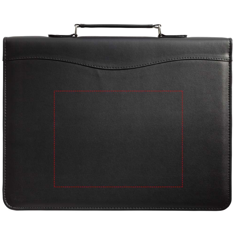 Portfolio A4 formaat met handgreep, ritssluiting, ringband, ritsvak en documentvakken. Met notitieblok met 20 pagina's gelinieerd papier. Pen en accessoires niet inbegrepen.