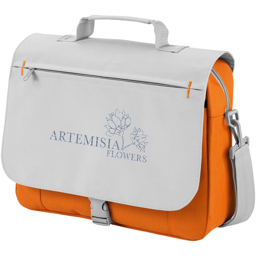 Schoudertas met verstelbare schouderband, gevoerde handgrepen, ritsvak aan de voorkant, centraal compartiment met ritssluiting en organizer-sectie onder de flap.