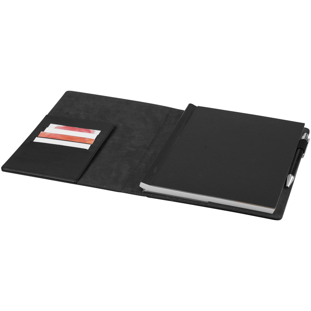 Portfolio in basis design, voorzien van een pennenlus en organizer vak aan de linker binnenzijde voor visitekaartjes en andere accessoires. 94 pagina's gelinieerd notitieblok. Verpakt in een Avenue geschenkverpakking.