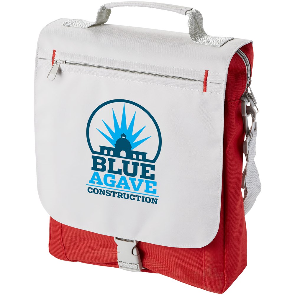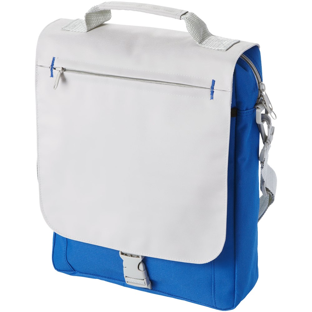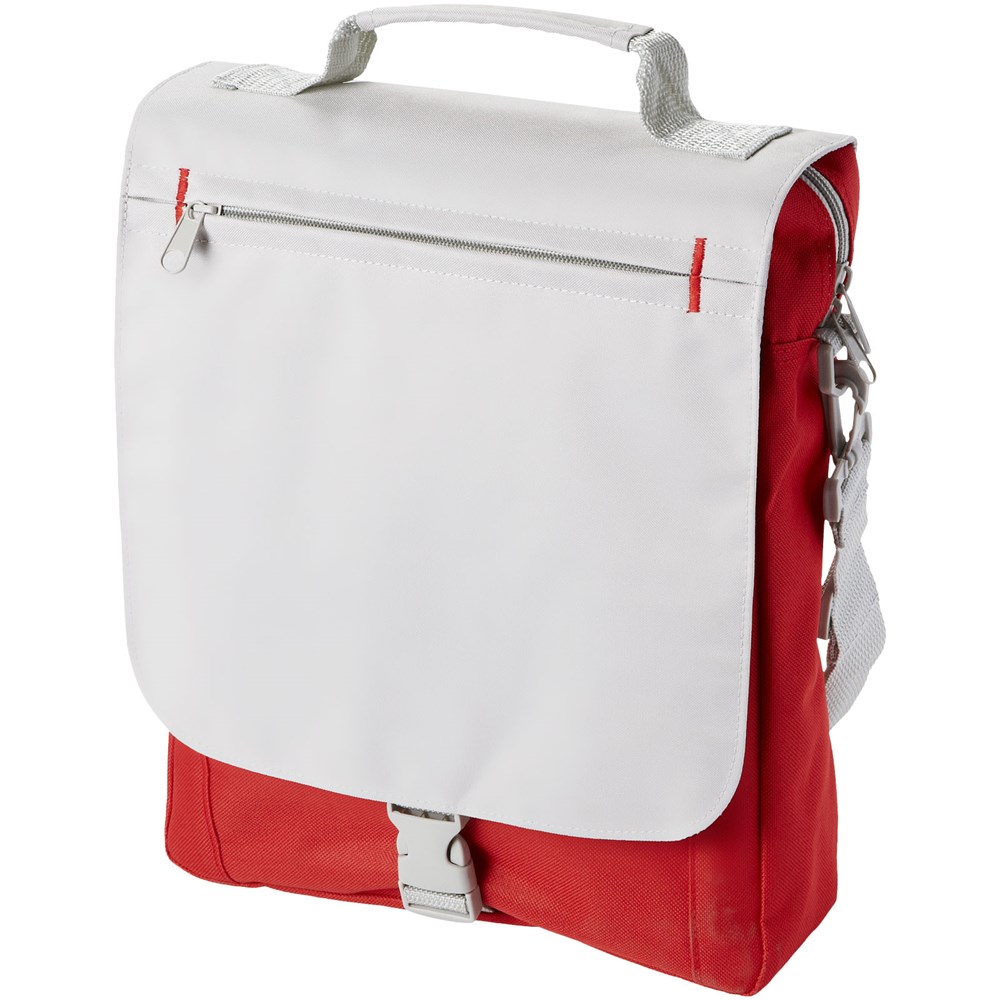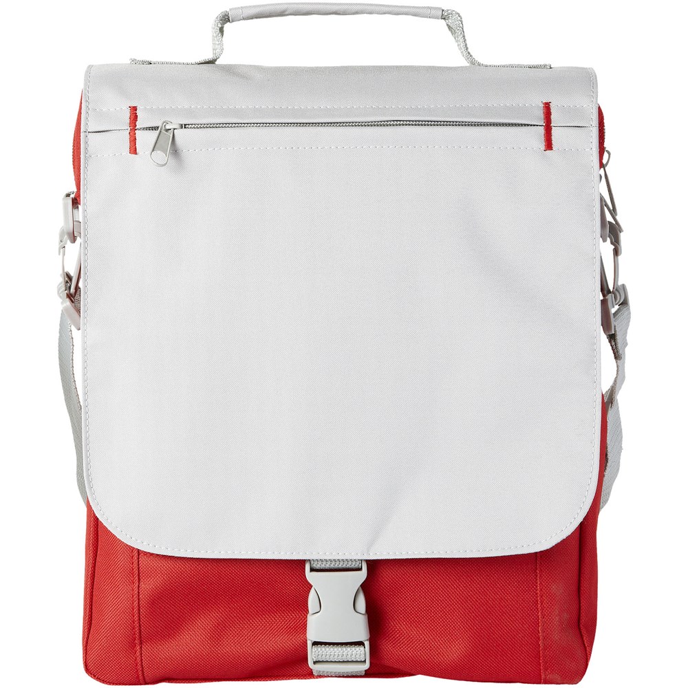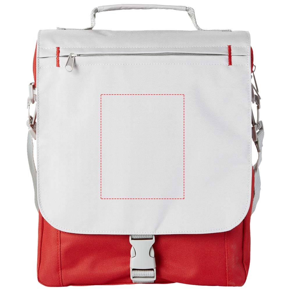 Schoudertas met verstelbare schouderband, gevoerde grepen, ritsvak aan de voorkant, centraal compartiment met ritssluiting en organizer-sectie onder de flap.