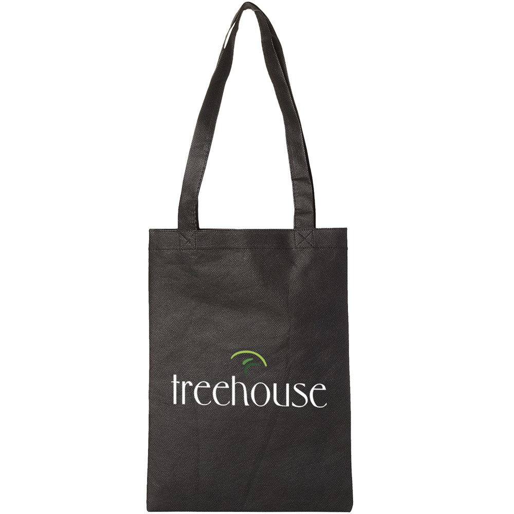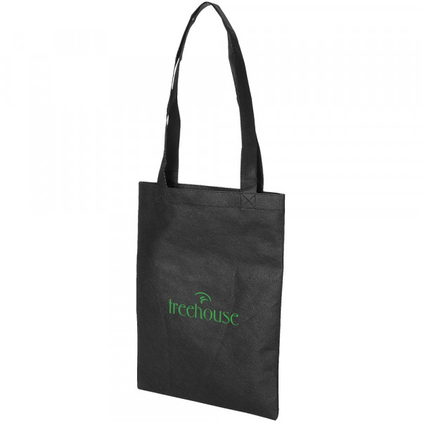 Compacte draagtas, ideaal voor beurzen en promotie evenementen. Draaghoogte 27 cm. Tas is geschikt voor recycling.