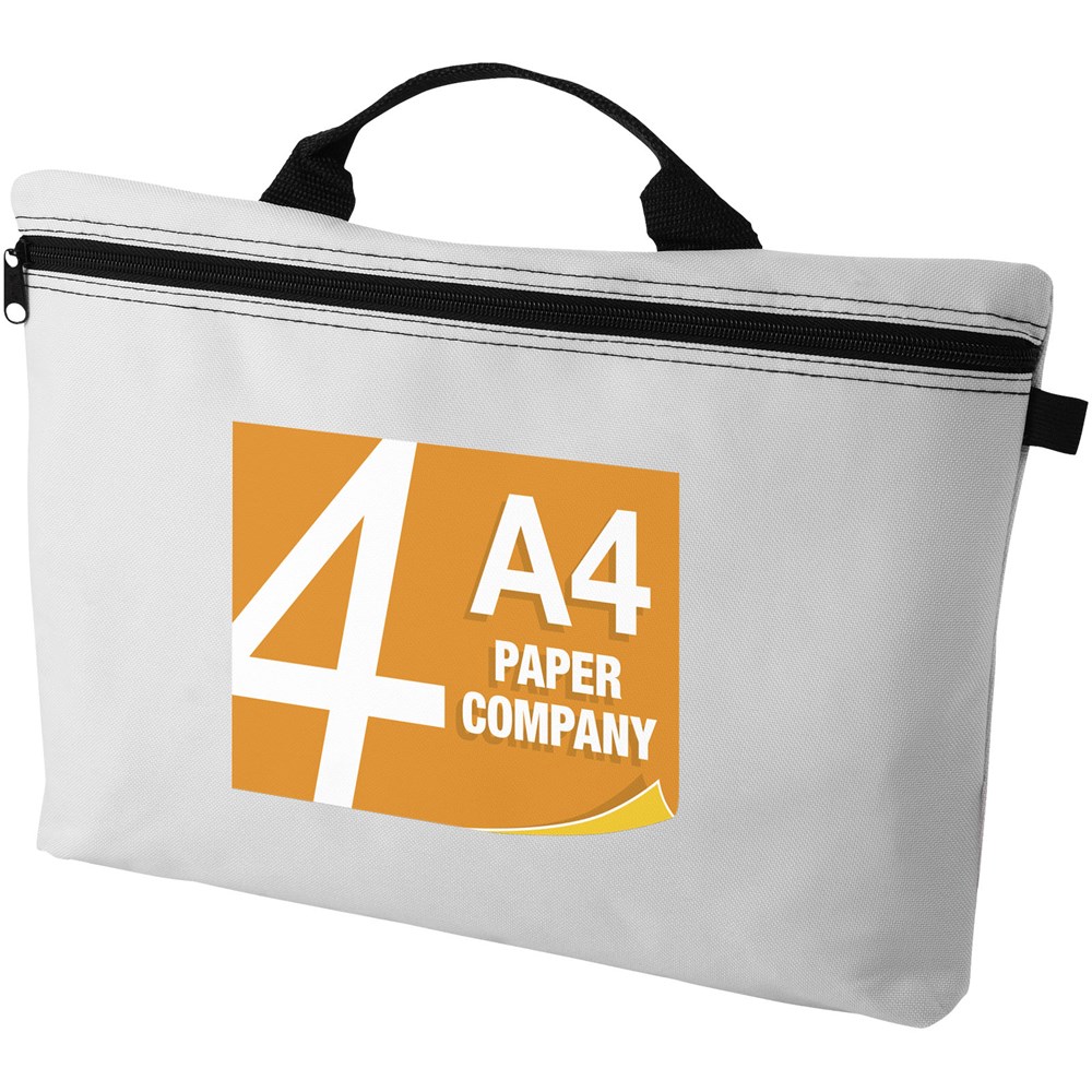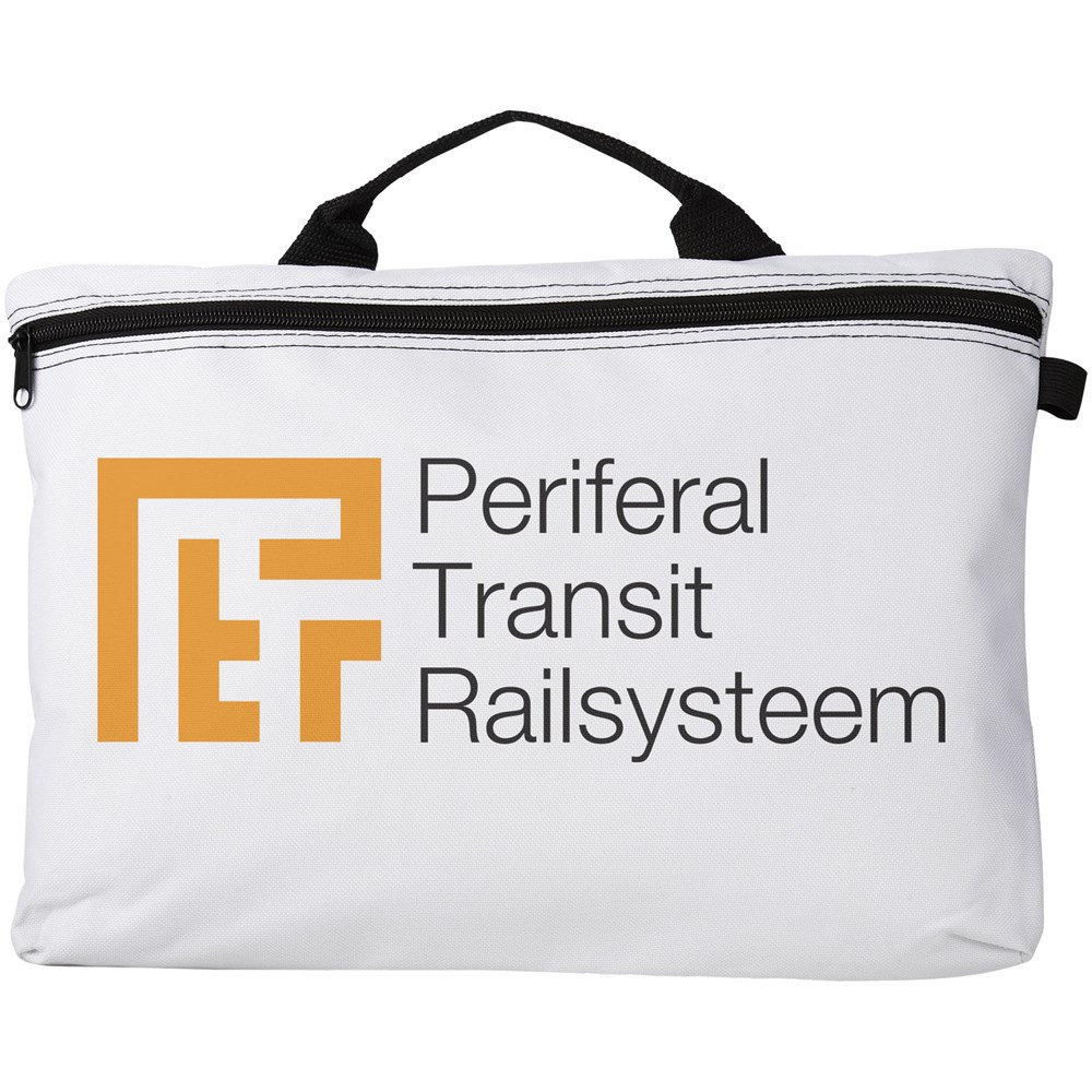 Conferentietas met handgrepen, ritssluiting en pennenlussen aan buiten- en binnenzijde. Geschikt voor A4 formaat documenten.