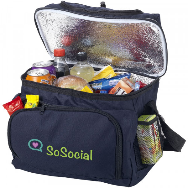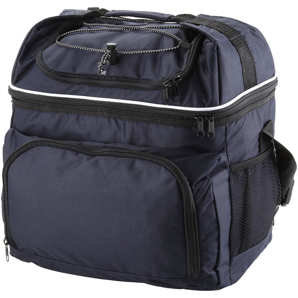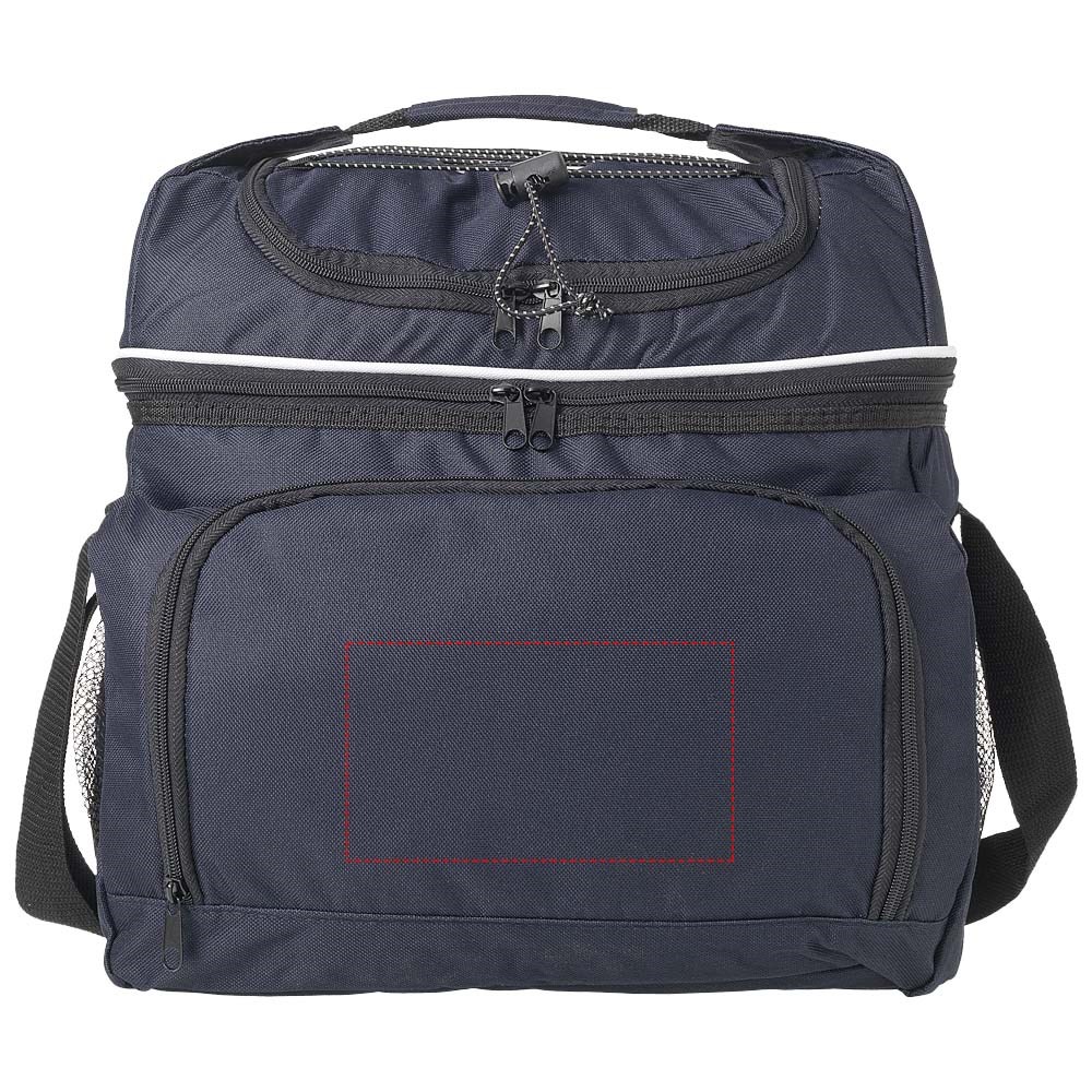 Koeltas met voorvak en handig vak aan de bovenkant voor snacks. Opvallend design met geïntegreerde draaggreep.