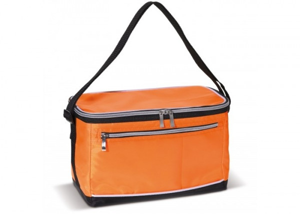 420D polyester koeltas met verstelbaar schouderhengsel (1200x30mm). Een groot koelvak en een klein vakje aan de voorzijde van de tas, beide afsluitbaar door middel van een rits. Compact formaat om mee te nemen.