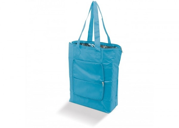 Grote koeltas. Tas is op te vouwen tot klein etui en te sluiten door middel van een rits. Met extra vakje aan de zijkant.