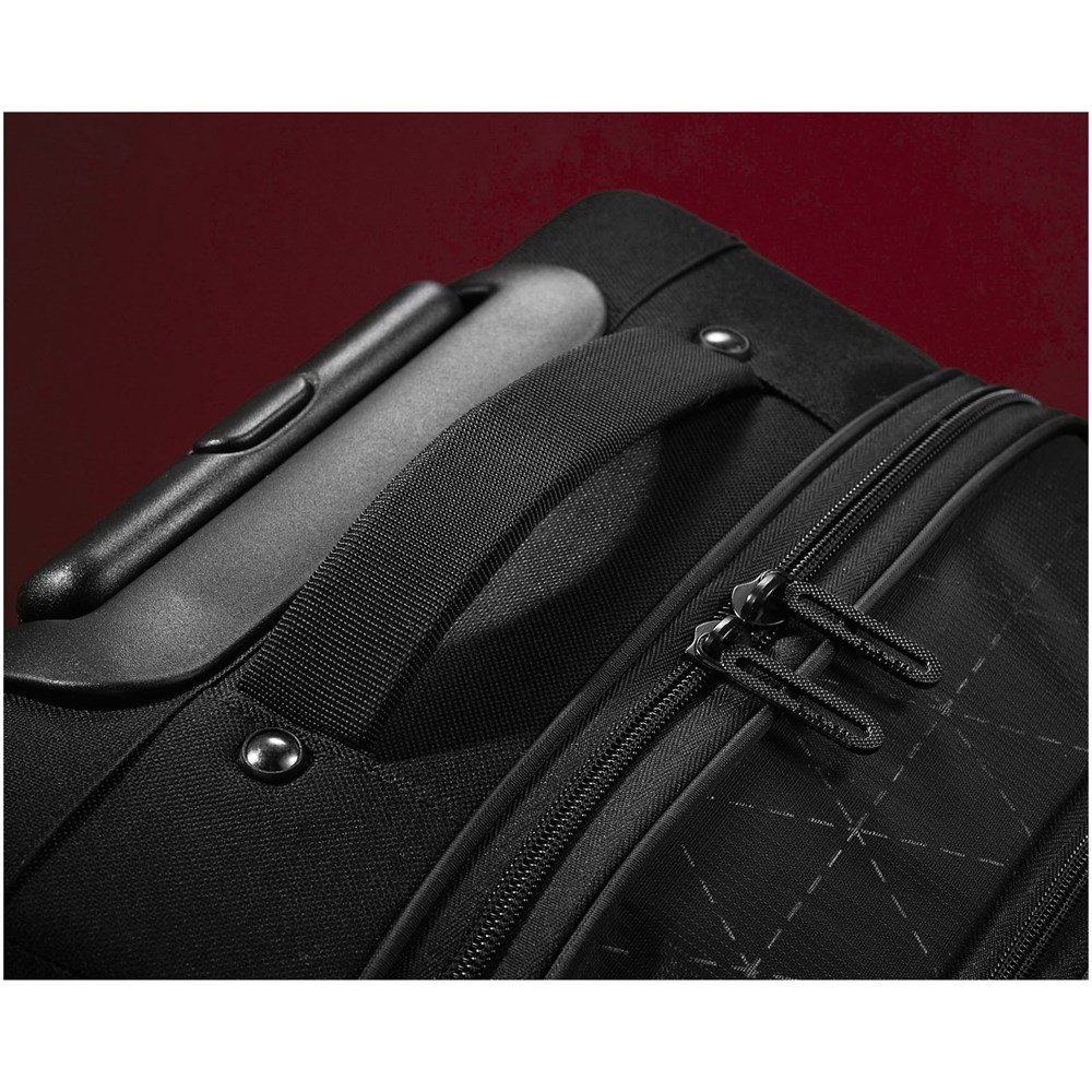 De Vapor 21" laptoprolkoffer is voorzien van een unieke gevoerde laptophoes die toegankelijk is vanaf het paneel bovenaan de voorkant. Het onderste voorvak heeft een gevoerd vak voor een iPad/tablet. Ook is het voorzien van alles wat je verwacht in een stuk bagage, zoals in de hoek gemonteerde inline-skatewielen, uittrekbare handgreep, hoofdvak met sjorbanden en een apart gedeelte voor uw wasgoed. In het bovenste voorvak kunt u al uw accessoires georganiseerd opbergen. De koffer heeft handgrepen aan de zijkant, onderkant en bovenkant om gemakkelijk vervoerd te kunnen worden in krappe ruimtes.