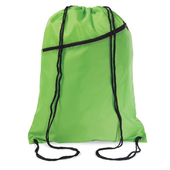 Eenvoudige rugzak met koord en voorvak met ritssluiting. 190T polyester. Sublimatie bedrukking alleen geschikt op het witte item.