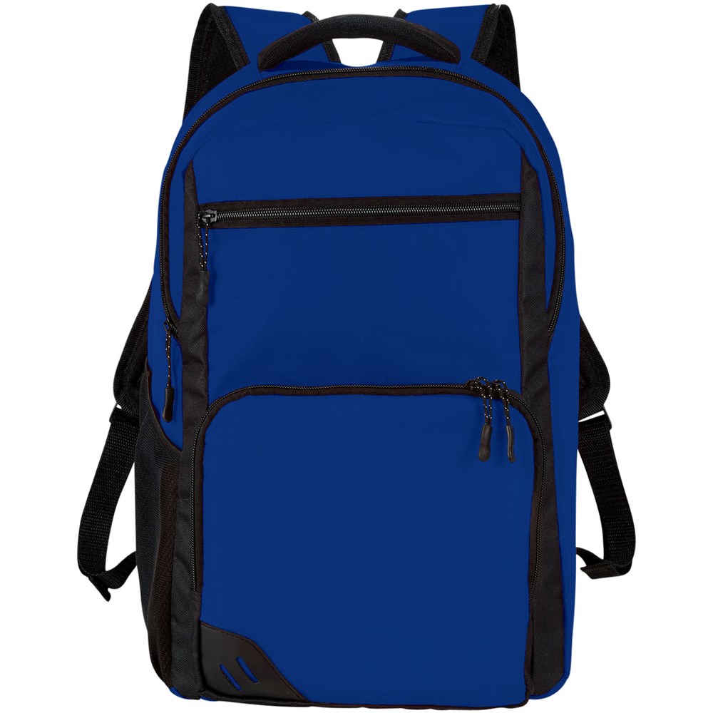 15" laptop rugzak met bovenvak voor snelle toegang, en een gevoerd laptop vak en tablet vak om je apparatuur te beschermen. Het grote voorvak heeft een organizer met indeling voor pennen, kredietkaartjes en andere belangrijke toebehoren. Flessenhouder aan de zijkant. Perfect voor zaken en school. PVC vrij.