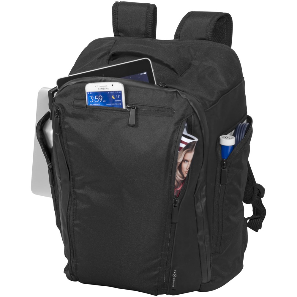 Exclusief ontworpen voor Marksman. 15.6" deluxe laptop rugzak met groot vak voorzien van een ritssluiting en met specifiek tabletvak. Voorvakken en zijvakken met ritssluiting, die een snelle toegang verlenen tot je accessoires of een fles water. De rugzak heeft eveneens een extra borstriem vooraan tussen de schouderbanden, om te voorkomen dat deze van je rug of trolley schuiven.