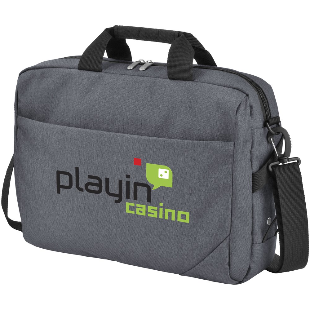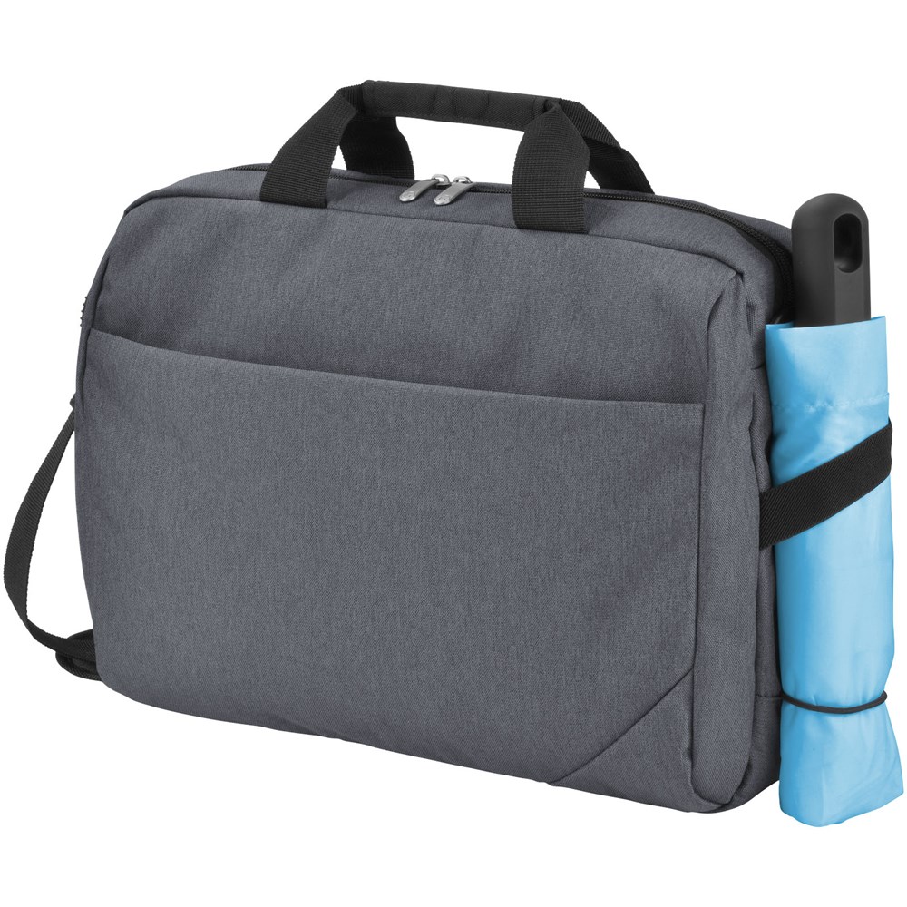 Exclusief design laptop tas met voorvak met ritssluiting, hoofdvak met rits met 14" laptopvak en tabletvak. Afneembare en verstelbare schouderriem. Handgrepen. Trolleykoker aan de achterkant. De elastische koker en lus aan de zijkant van de onderkant kunnen worden gebruikt voor uw paraplu of waterfles.