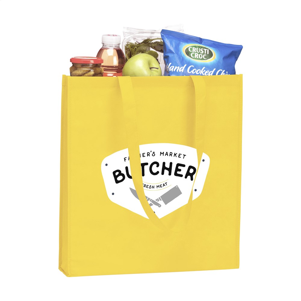 Royale winkeltas met lange hengsels. Van nonwoven materiaal (80 g/m²). Een superlichte maar oersterke schoudertas.