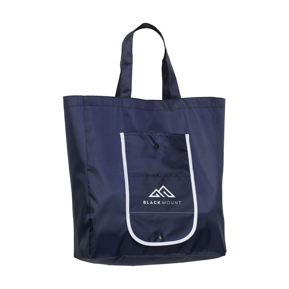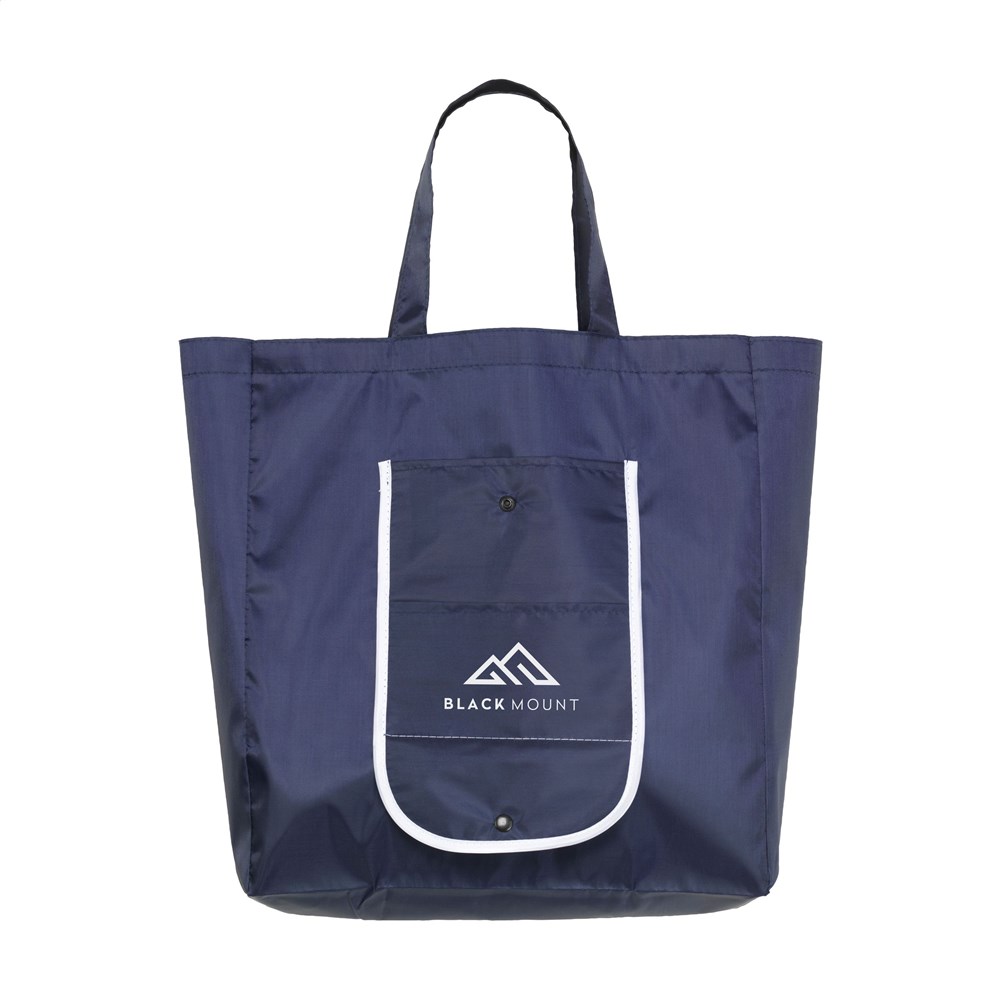 Opvouwbare winkeltas van 210D polyester. Met 2 insteekvakken. Afm. uitgevouwen 44 x 36 x 11 cm. Afm. opgevouwen 17 x 9 x 1,5 cm. 50 g.