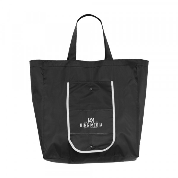 Opvouwbare winkeltas van 210D polyester. Met 2 insteekvakken. Afm. uitgevouwen 44 x 36 x 11 cm. Afm. opgevouwen 17 x 9 x 1,5 cm. 50 g.