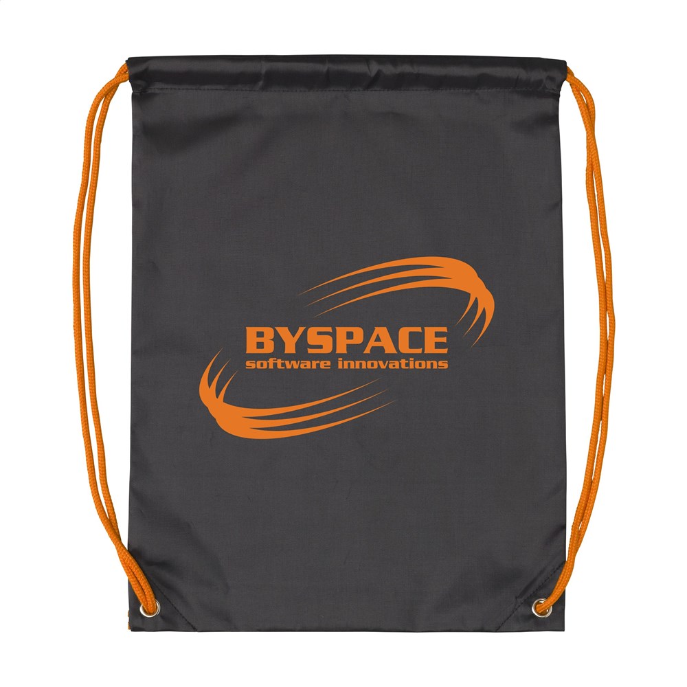 Rugzak van waterafstotend 210D polyester. Met gekleurde aanrijgkoorden. Inhoud ca. 8 liter.