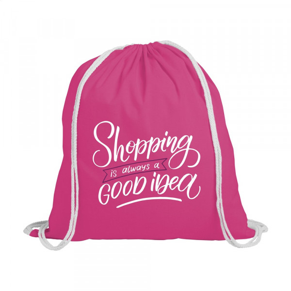 Rugzak van 100% katoen (125 g/m²). Met aanrijgkoord. Inhoud ca. 8 liter.