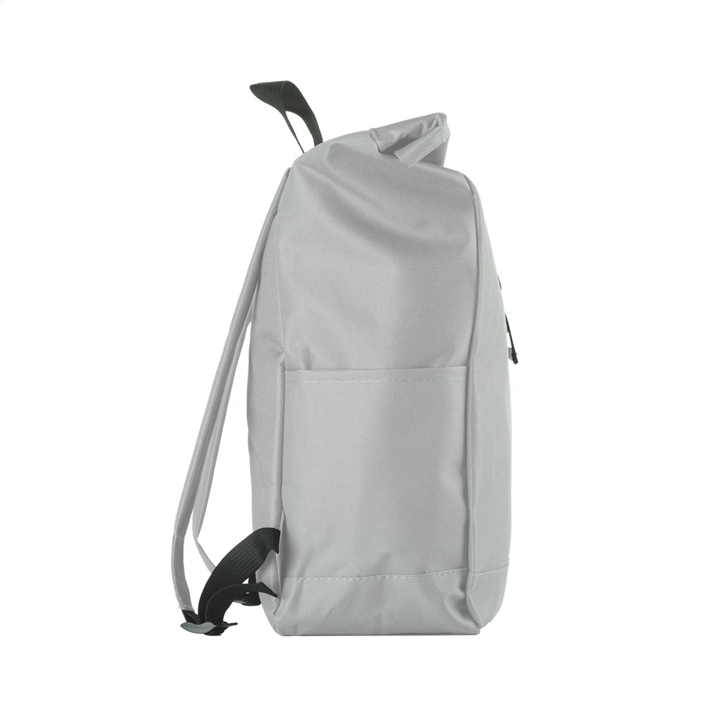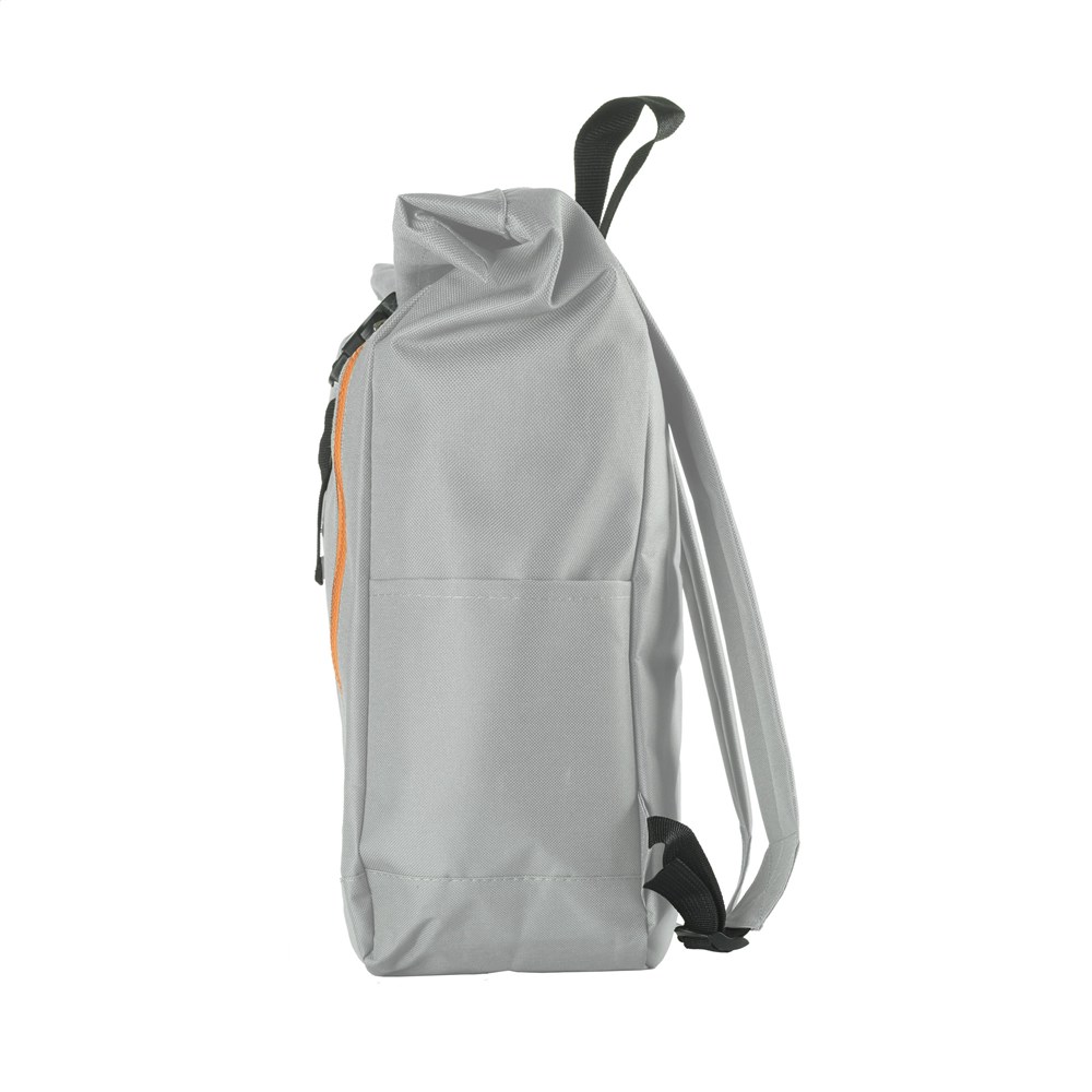 Stoere, praktische urban rugzak van sterk 600D polyester met waterbestendige PVC binnenzijde, gedeeltelijk nylon gevoerd. De rugzak heeft één groot binnenvak, een insteekvak aan beide zijdes en een groot ritsvak aan de voorzijde. Met foam rugzijde voor meer draagcomfort, gewatteerde, verstelbare schouderriemen en draaglus. Met oprolbare sluiting en handig kliksysteem. De perfecte tas voor dagelijks gebruik. Inhoud ca. 18 liter.