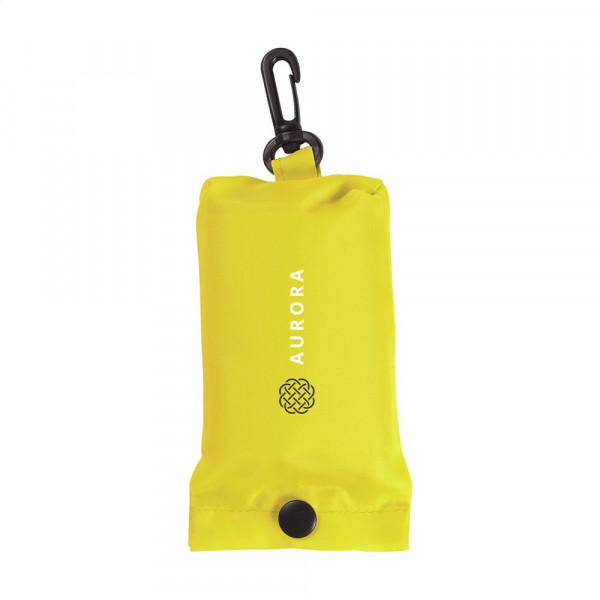 Opvouwbare winkeltas van 190T polyester. In etui met drukknoop en karabijnhaak. Afm. uitgevouwen 53 x 38 cm.