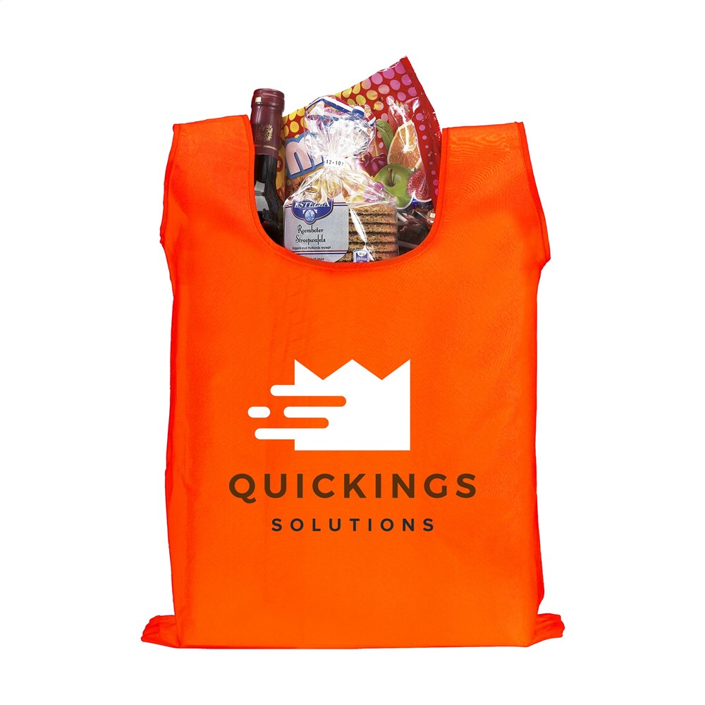 Opvouwbare winkeltas van 190T polyester. In etui met drukknoop en karabijnhaak. Afm. uitgevouwen 53 x 38 cm.