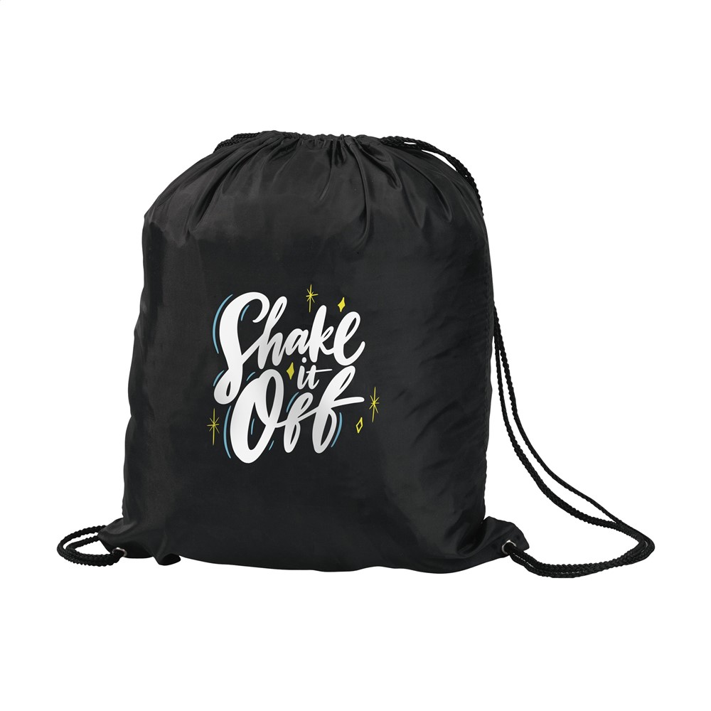 Rugzak van waterafstotend 190T polyester. Met aanrijgkoorden. Inhoud ca. 8 liter.